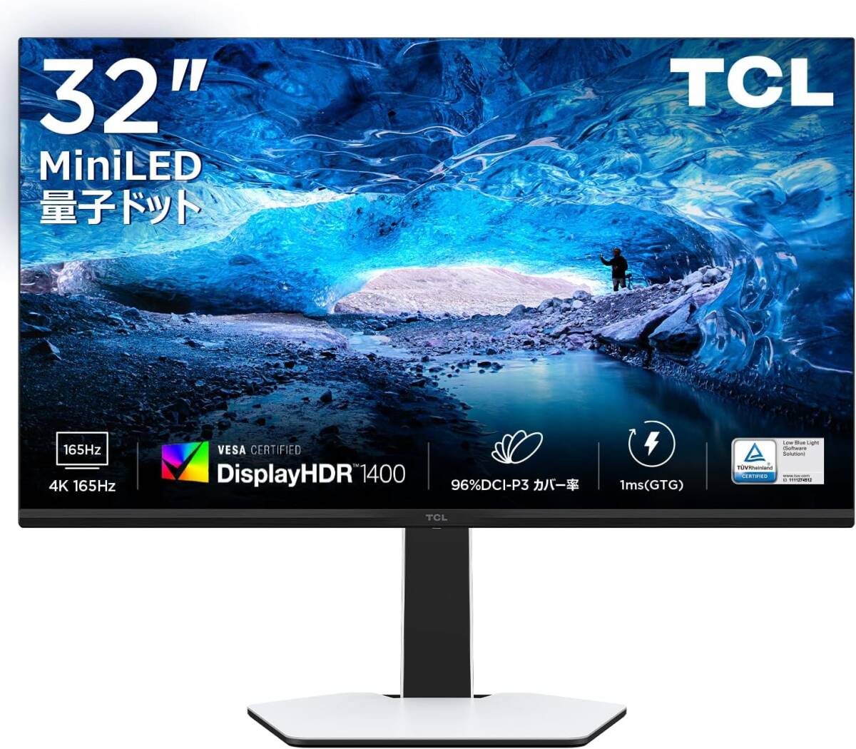 TCL 量子ドットMini LED モニター 32インチ 32R84 4K 165Hz Fast HVAパネル 1ms 非光沢 HDR1400
