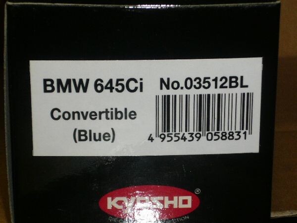 1/43 京商 BMW 645Cu Convertible 青です。箱に少し痛みがありますので、ご了承の上入札下さい。商品の状況は写真でご判断の上、ノークレーム・ノーリターンでお願いします。保証はできませんが、定形外郵便での発送も可能です。