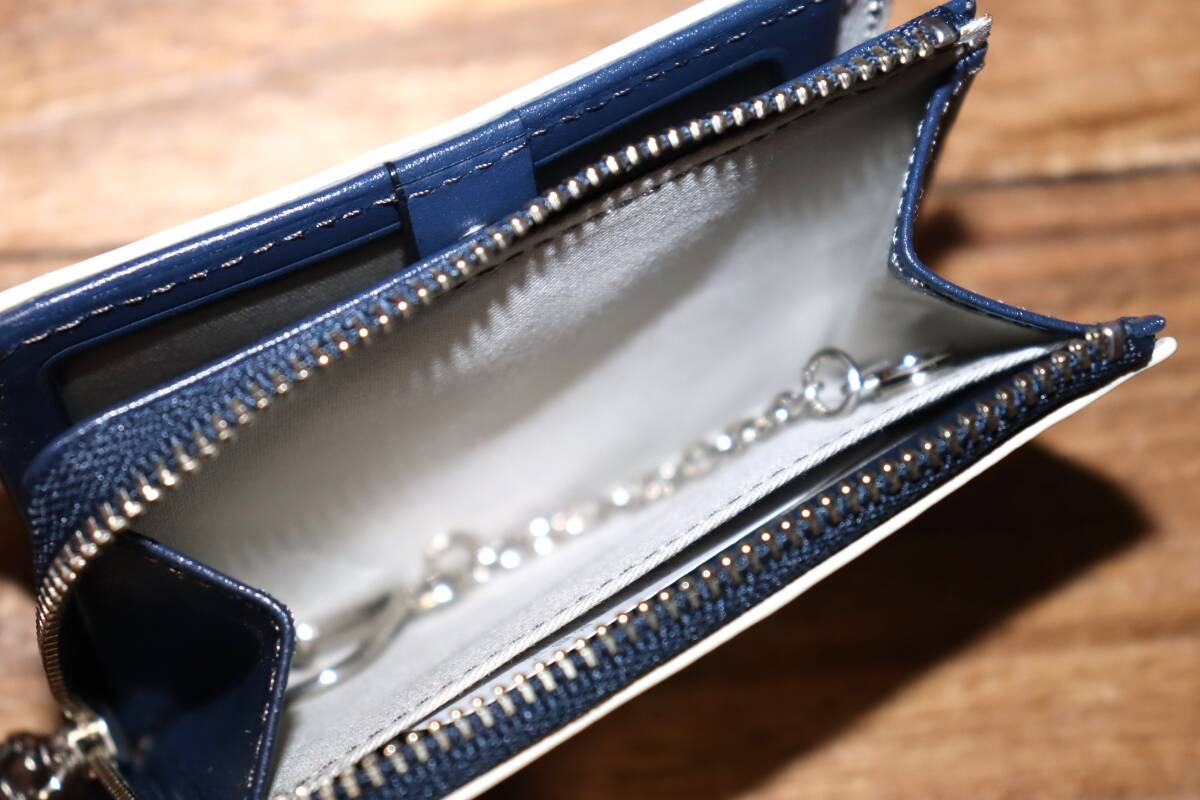 小銭入れL字ファスナー式開閉 内側:キーチェーン×1+ポケット×1 / カードポケット×3 / パスケース×1
