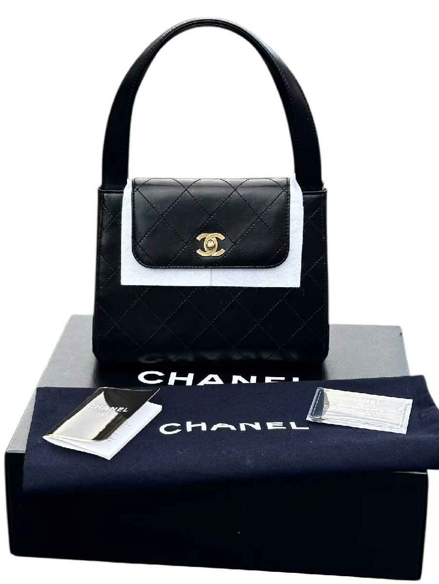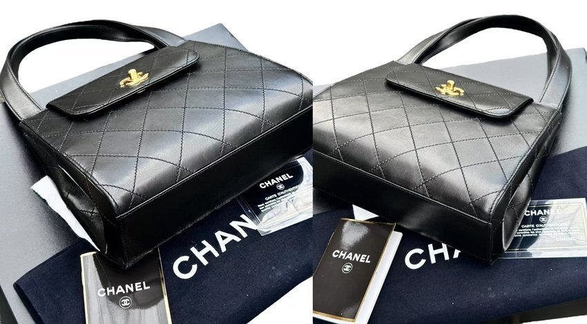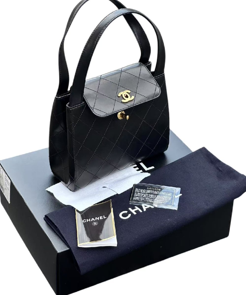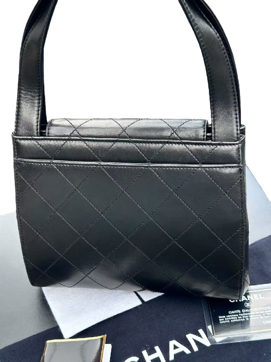 保管品◆本物CHANELシャネルヴィンテージVintageマトラッセココマークG金具ワイルドステッチハンドバッグトートバッグ黒金付属品完璧5番台 |