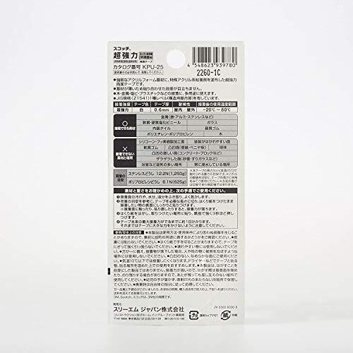 「3M 両面テープ 超強力 スーパー多用途 薄手 幅25mm 長さ1m スコッチ KPU-25 小巻 プレミアゴールド」▼4548623939780▼(商品説明)03. 薄手 幅25mm長さ1m・平滑面用薄手 c. 幅25ミリ長さ1.0メートル KPU-25・・Color:平滑面用薄手Size:c. 幅25ミリ長さ1.0メートルPatternName:単品・3Mスコッチ超強力両面テーププレミアゴールドスーパー多用途薄手KPU-25・基材:アクリルフォーム 粘着剤:特殊アクリル系・サイズ(厚みx幅x長さ):0.6mmx25mmx1m・使用温度範囲:-20~80℃・屋内・屋外用説明 ●金属、木、プラスチック及び軟質塩ビにも接着可能な、多用途に使える超強力タイプの薄手の両面テープです。