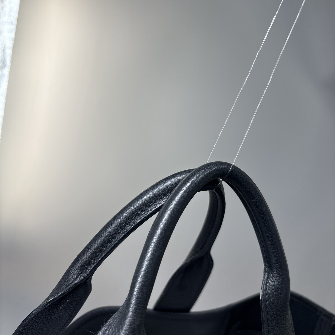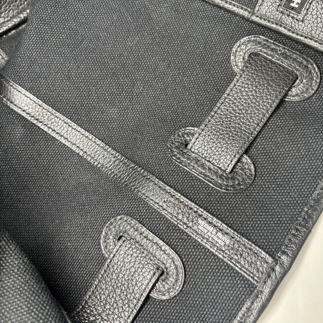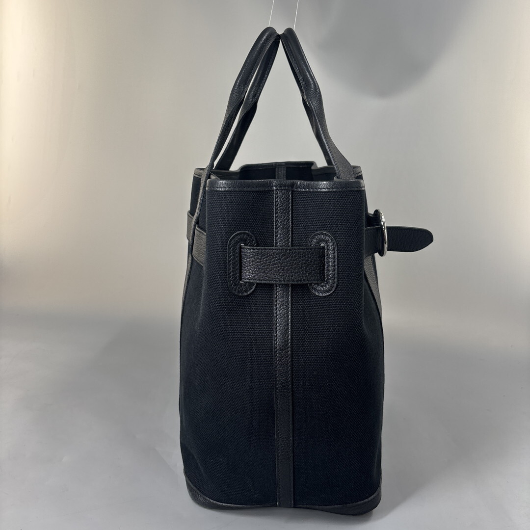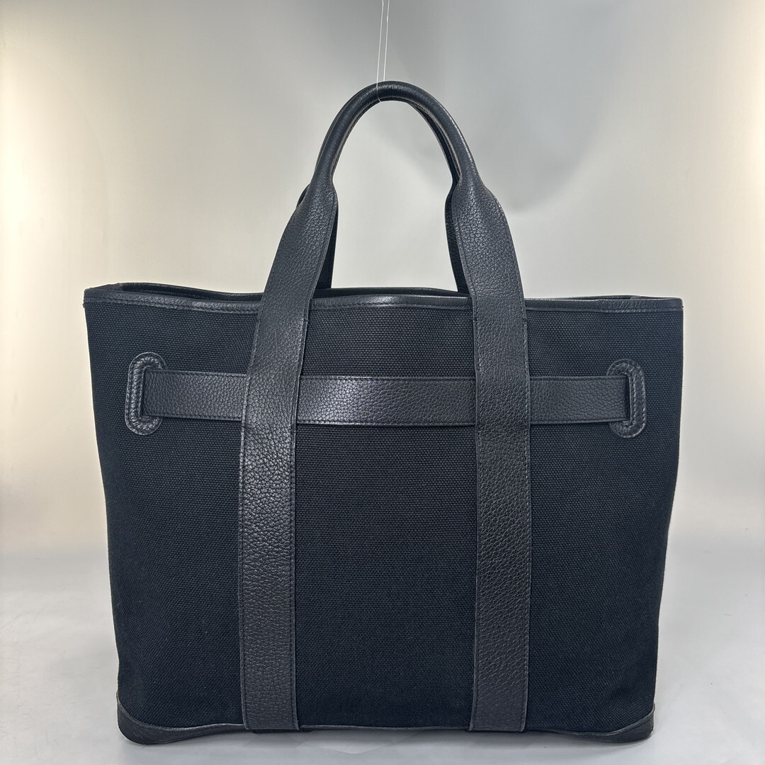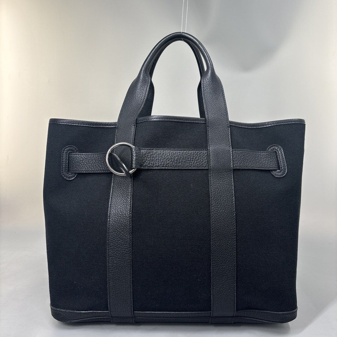 【超極美品】HERMES エルメス プティットサンチュール MM □J 刻印 ハンドバッグ トートバッグ キャンバス レザー ブラック 黒