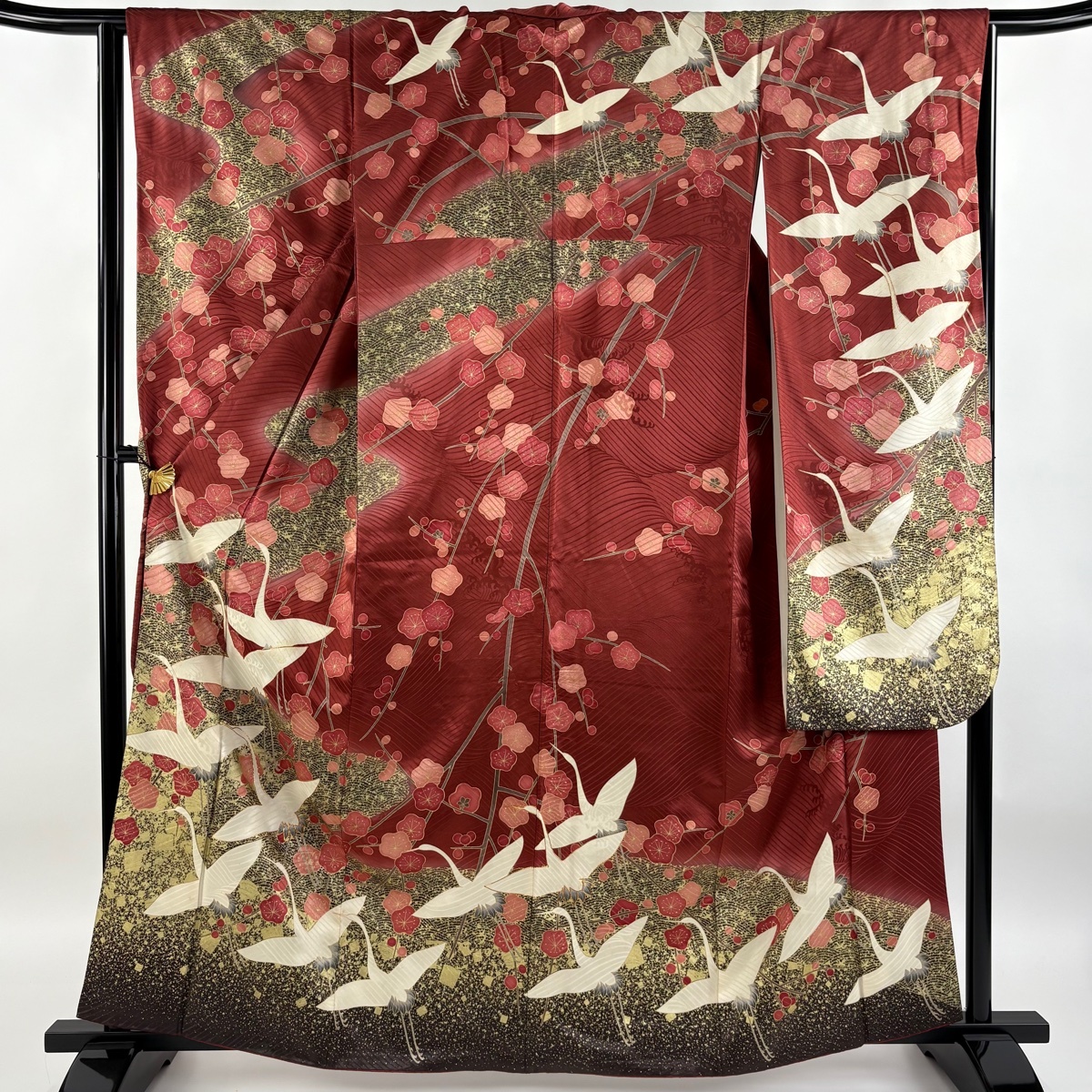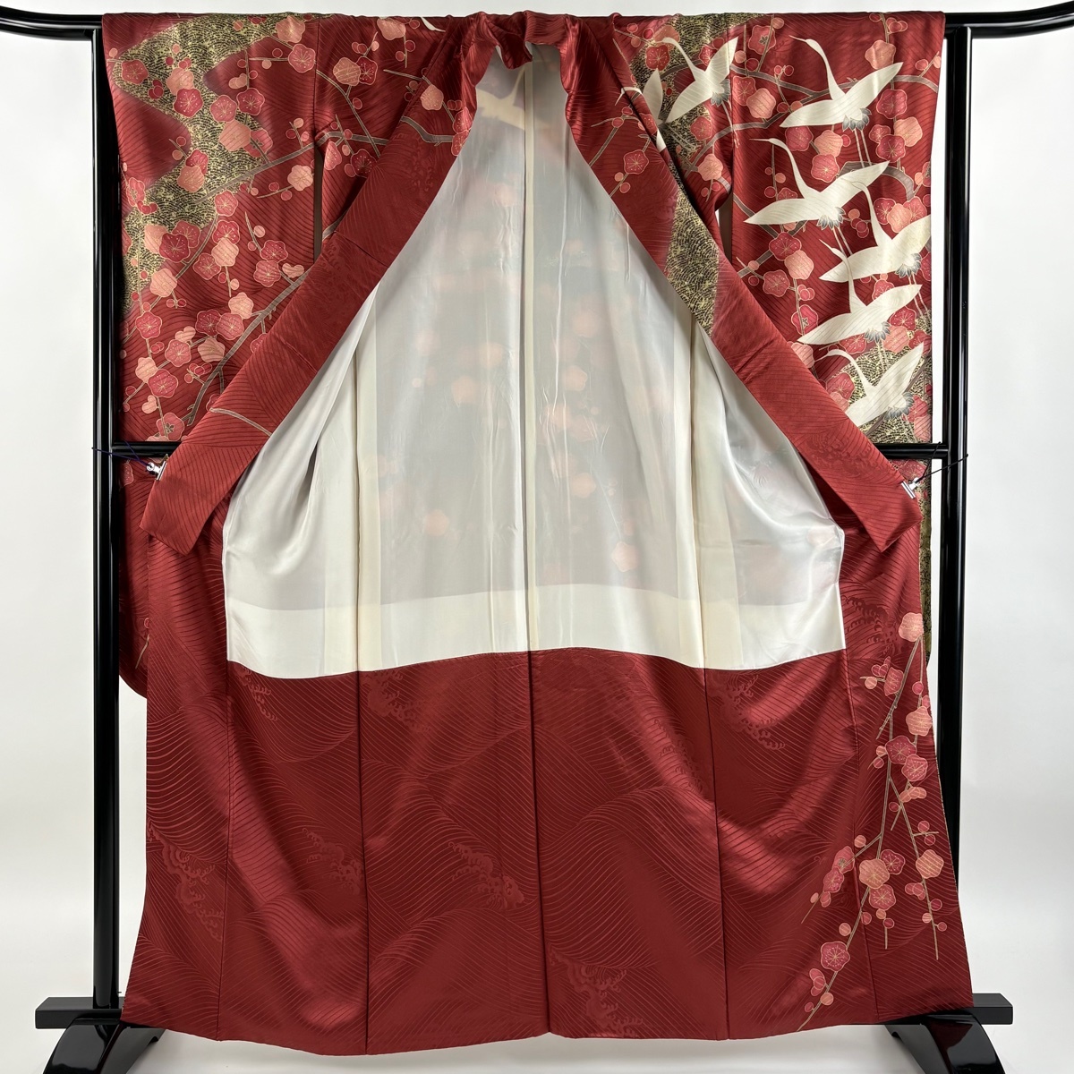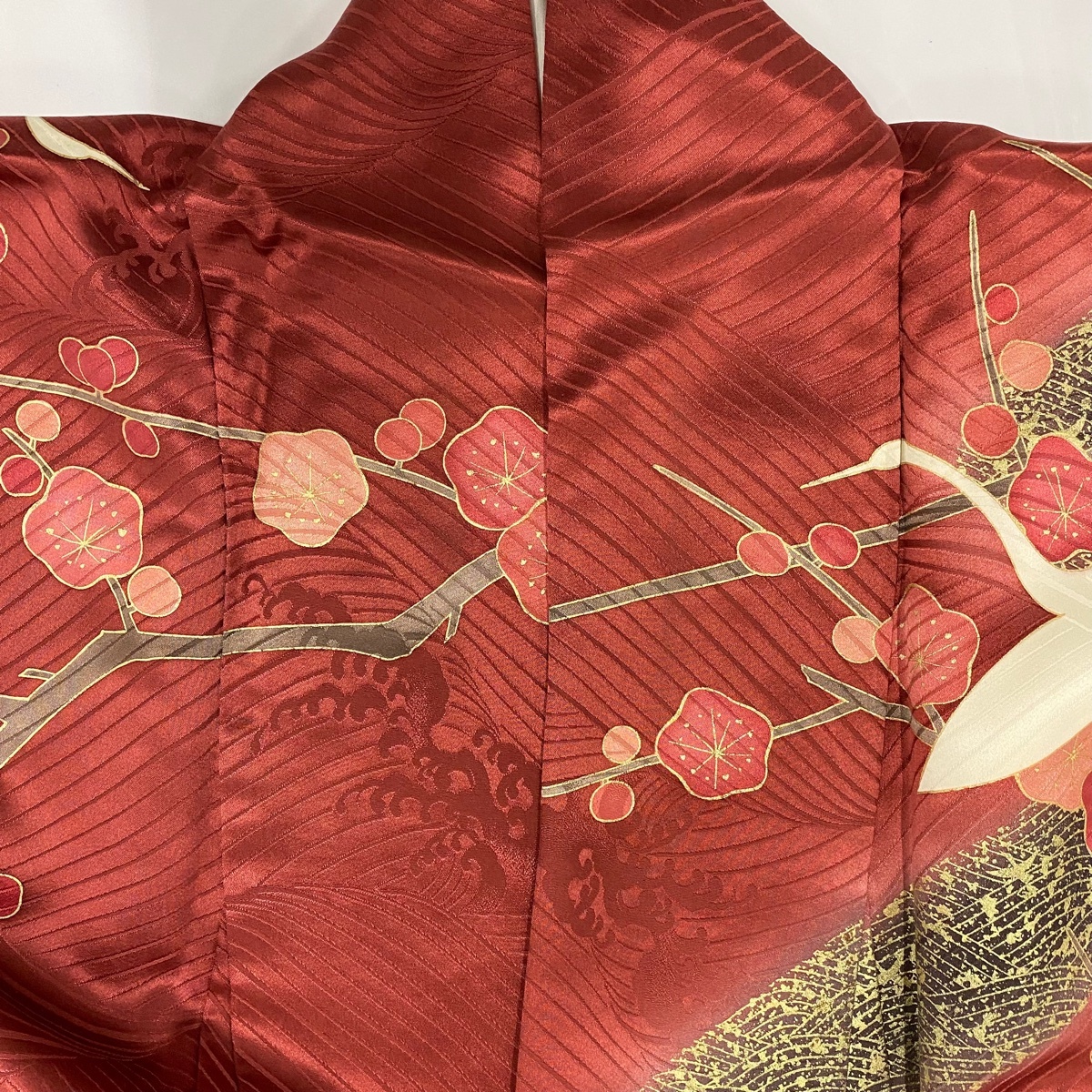 振袖 秀品 鶴 梅 金糸 金彩 赤茶 袷 身丈161.5 裄丈64.5 M 正絹 【中古】 |