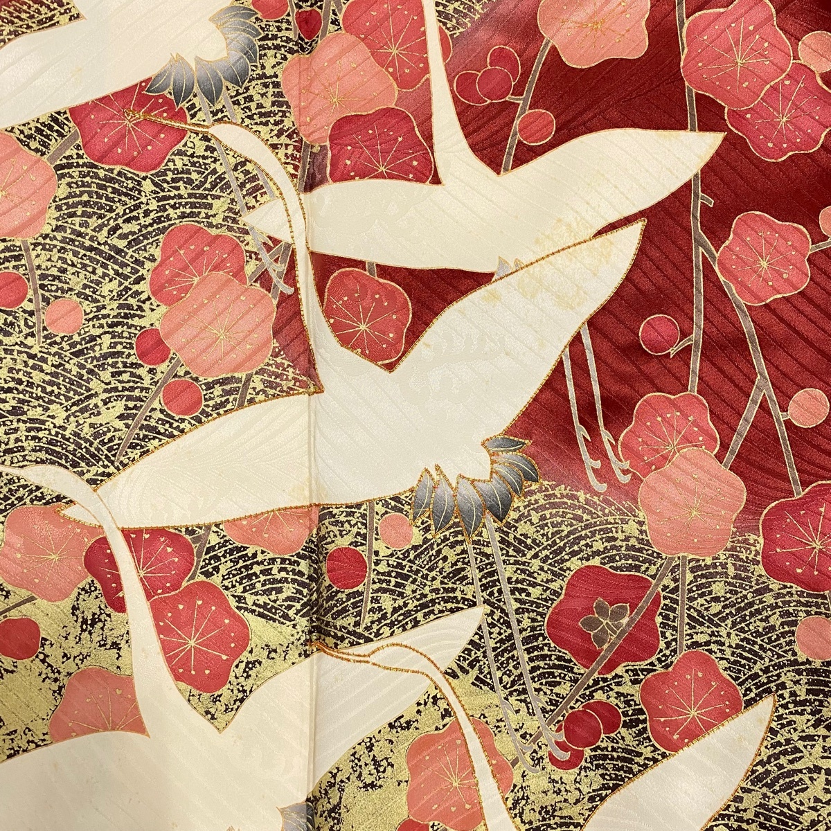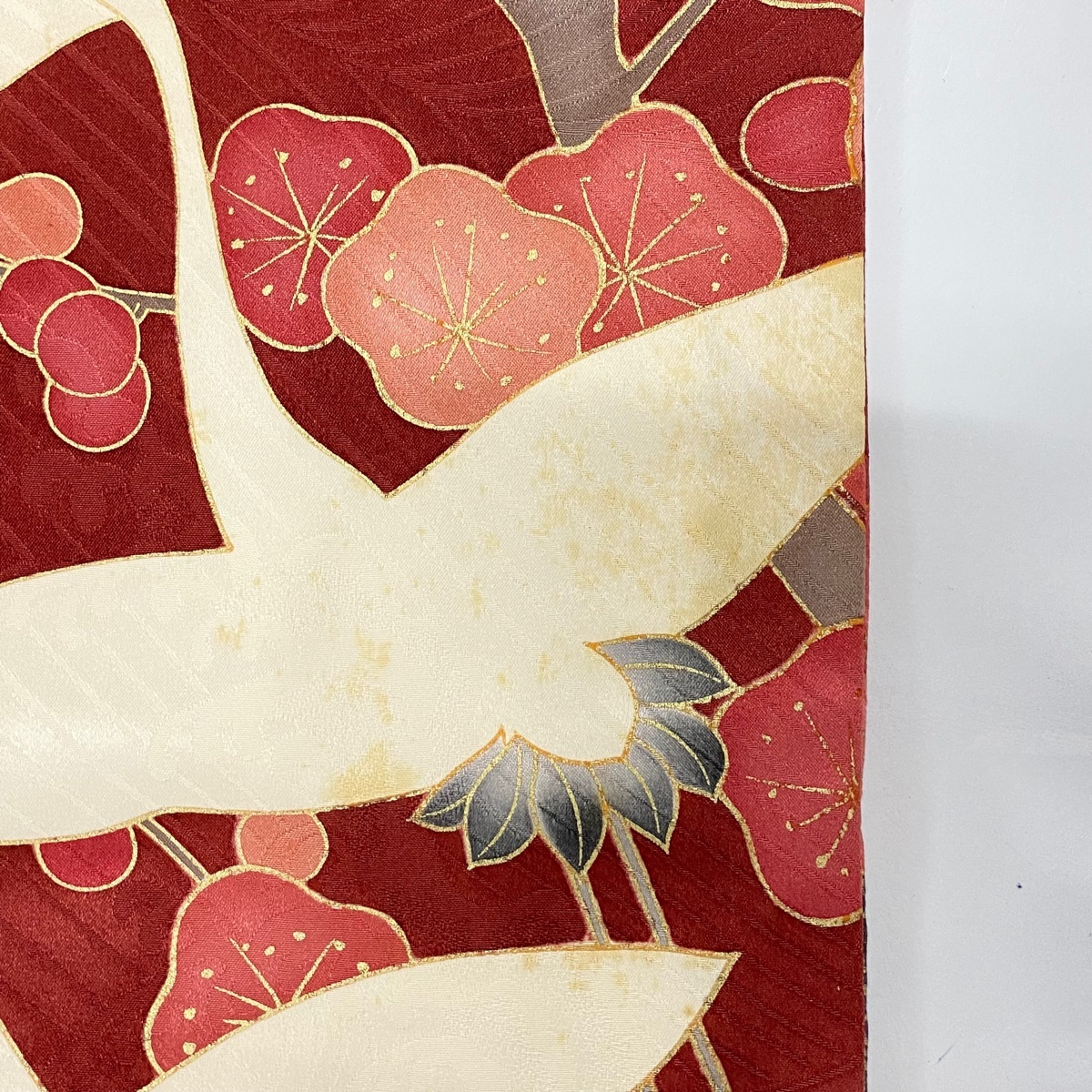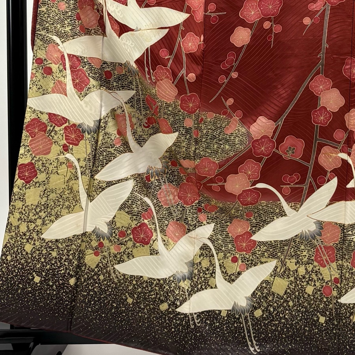 振袖 秀品 鶴 梅 金糸 金彩 赤茶 袷 身丈161.5 裄丈64.5 M 正絹 【中古】 |