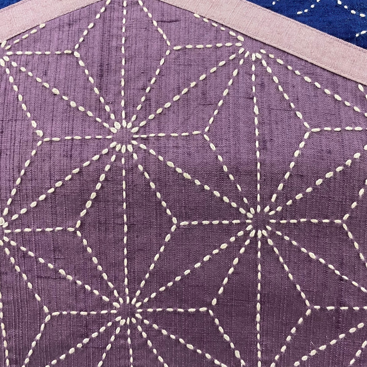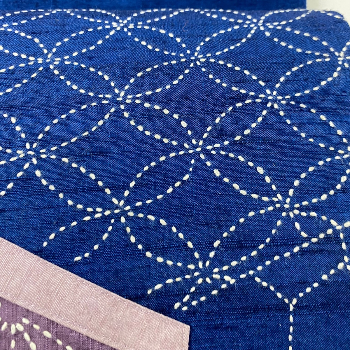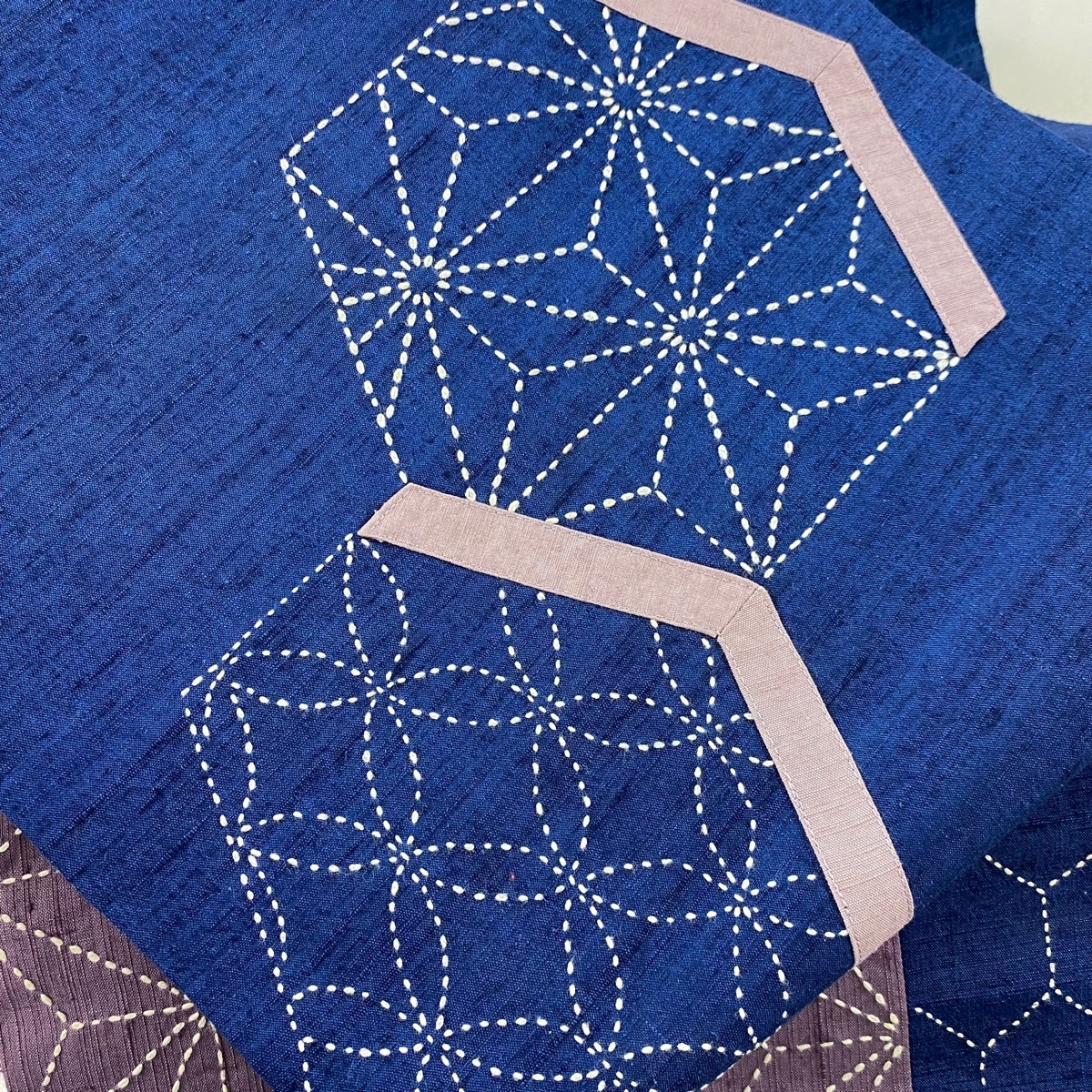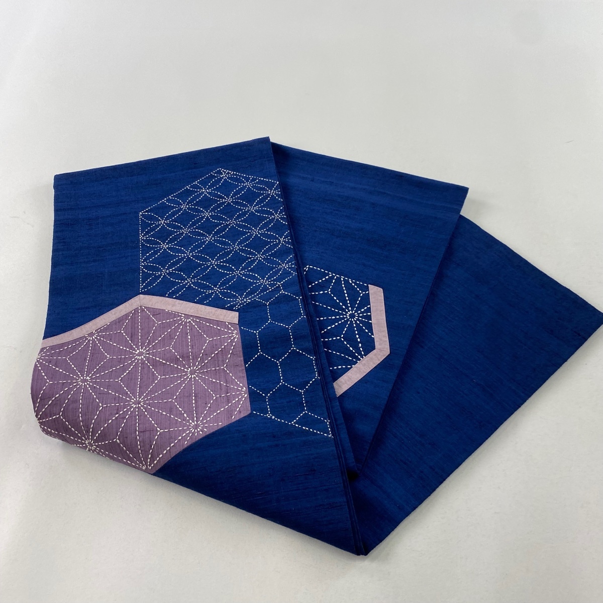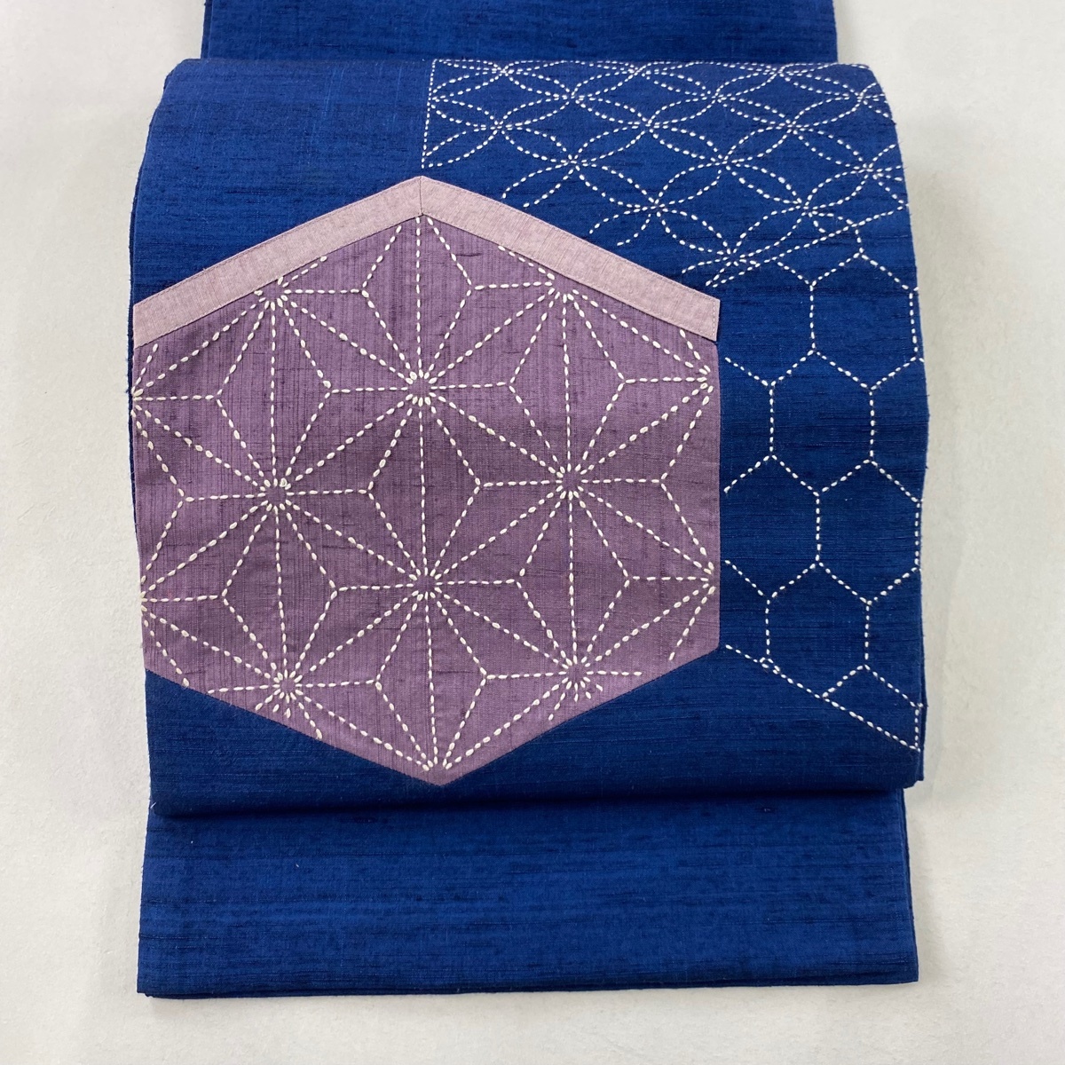 | 名古屋帯 美品 秀品 七宝 麻の葉 刺繍 紺色 正絹 【中古】 |