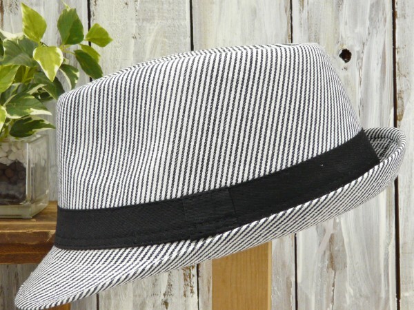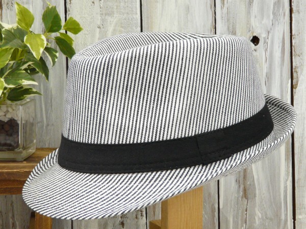 全国一律送料450円 フェドラハット ストライプ マリン ブラック ホワイト 男女OK ハット パナマ ボルサリーノ 中折れ