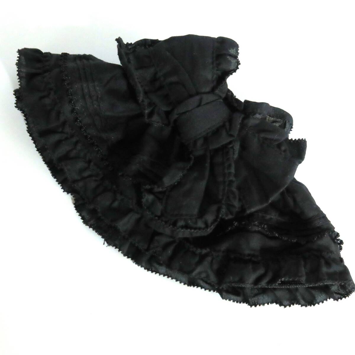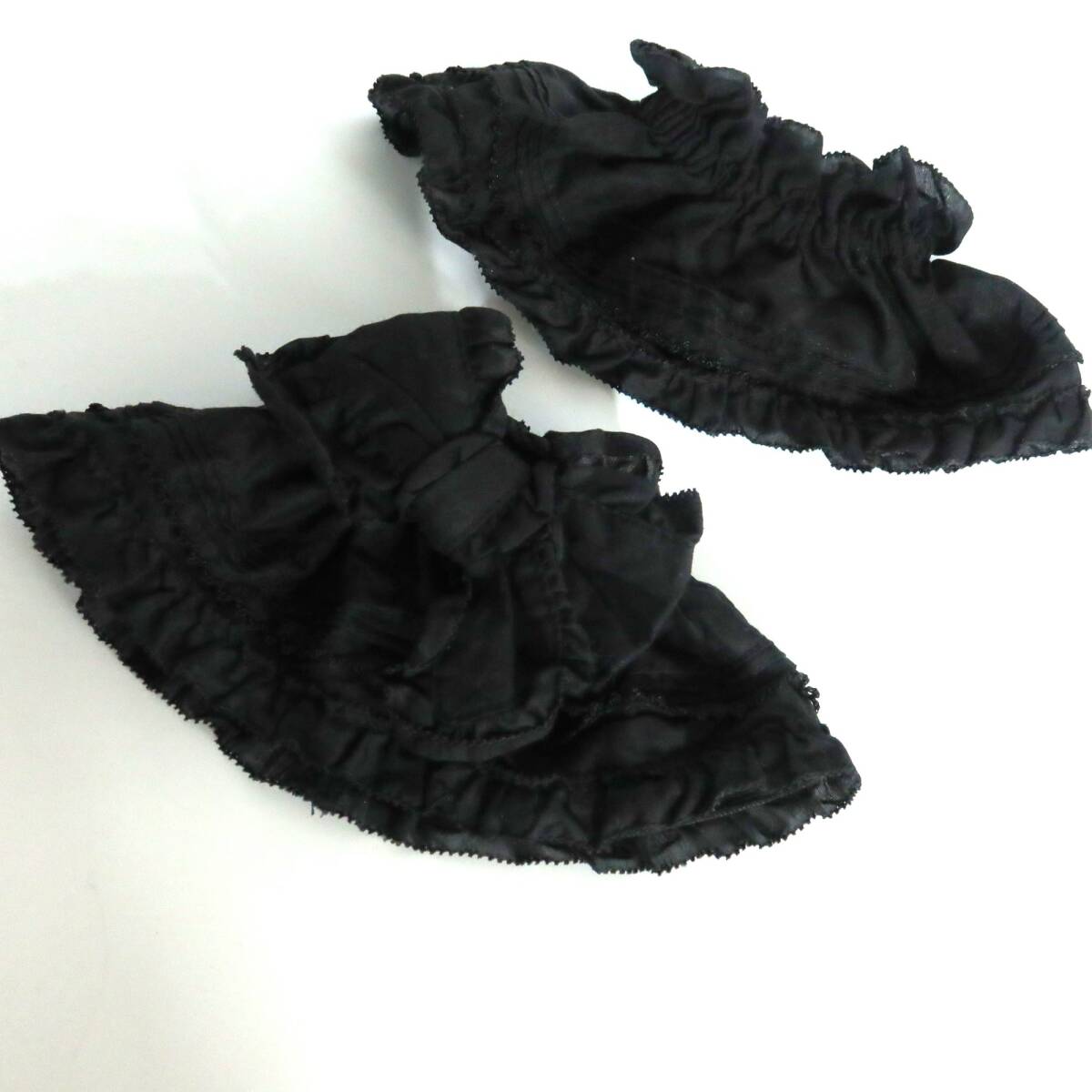商品説明 | 【実寸約】長さ10 【状態】普通の使用感あるお品物 一つにリボンがありません 【デザイン】黒系 綿ローン生地と見受けられます たっぷりフリルの黒カフスです |