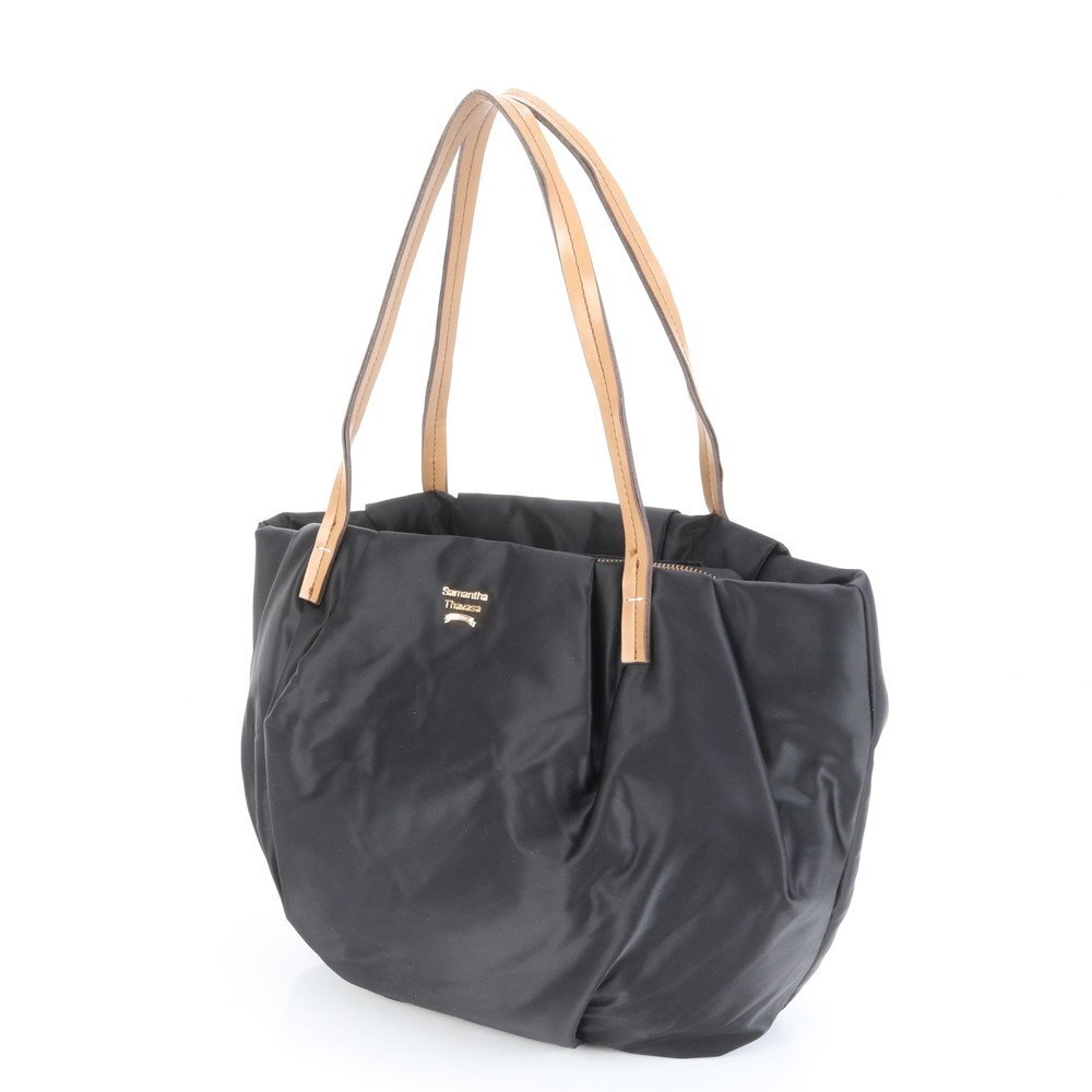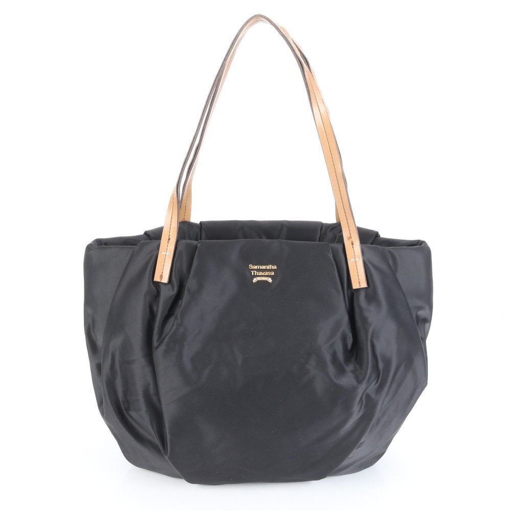 ■美品■サマンサタバサ■レザー ナイロン トート バッグ 肩掛け ショルダー ハンド 本革 ブラック 黒 ブランド レディース RRM CM3-5