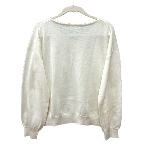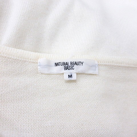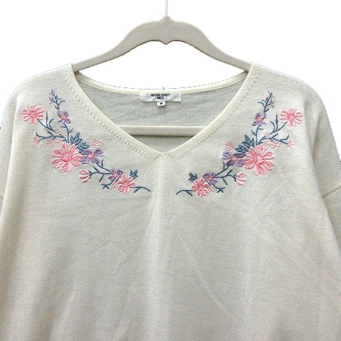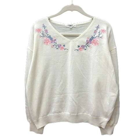 ナチュラルビューティーベーシック NATURAL BEAUTY BASIC ニット カットソー Vネック 刺繍 長袖 M 白 アイボリー /MN レディース
