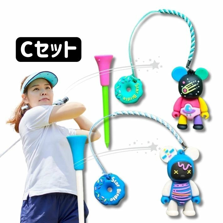 Cセット 2個セット ゴルフ ティーキーパー くまベア紛失防止置き忘れ防止ティー収納 かわいい スマート設計メンズレディースラウンド用品