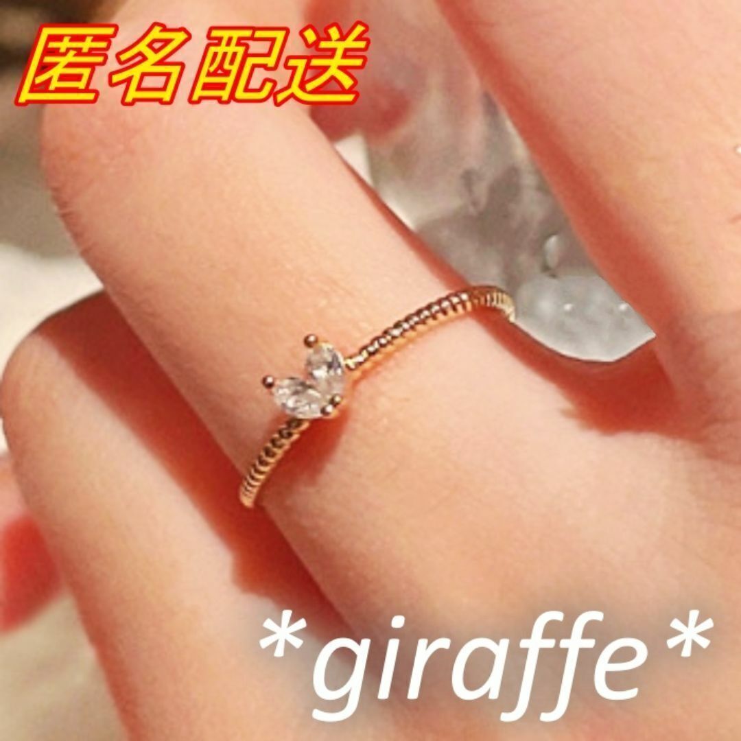 A740 匿名配送 指輪 レディース ハート ジルコニア リング ゴールド フリーサイズ 細い サイズ調節可能 可愛い