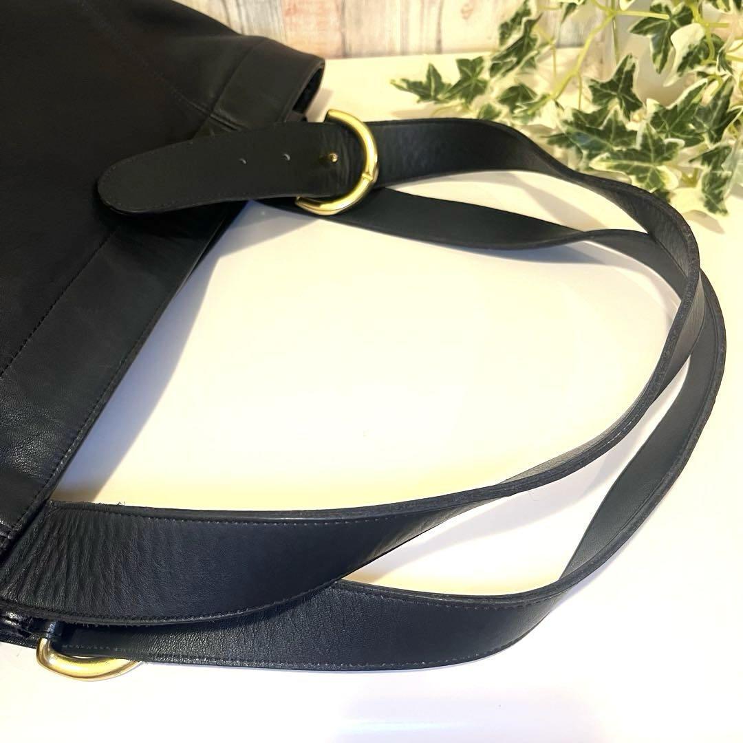 COACHでも根強い人気のオールレザーのバッグです。黒に近い濃紺はコーディネートしやすく