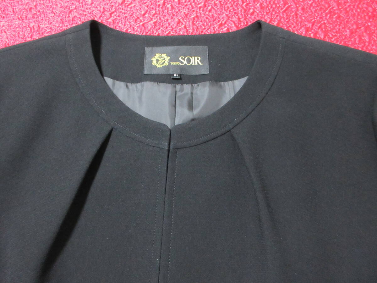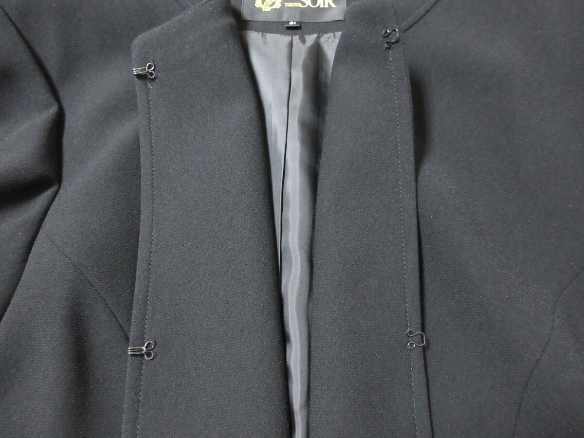 即決 タグ付き未使用 東京ソワール  礼服  サイズ21号 ブラックフォーマル 総裏付きコートジャケット 首元の切り替え生地光沢なし