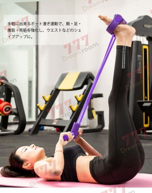 ローイングマシン フィットネスチューブ パープル 腹筋器具 腹筋運動 背筋トレーニングに お腹やせ おうちストレッチ フィットネス