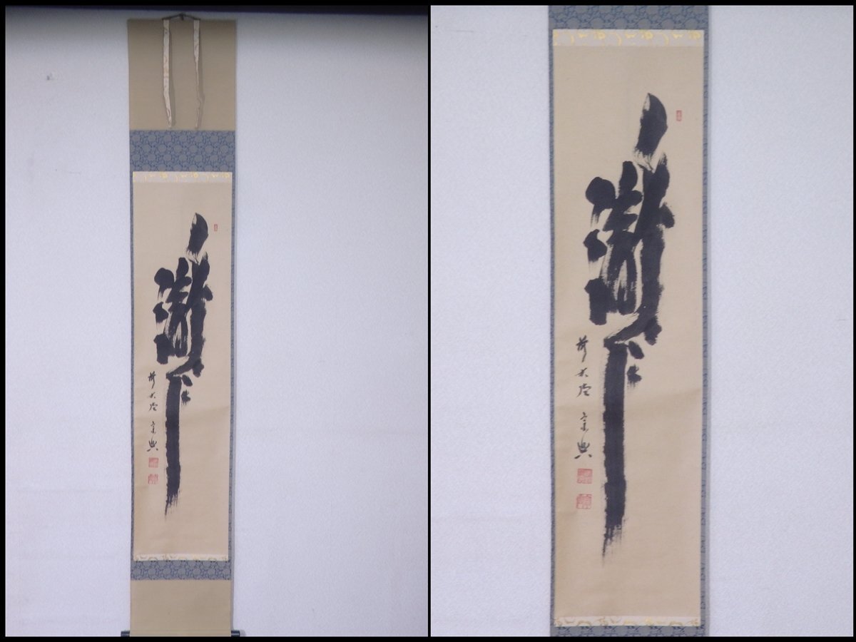 ★前大徳 西垣宗興和尚 肉筆【掛軸『瀧』共箱】紙本 幅30.4×全長179.8cm 夏 茶道具 茶掛け 一行書 大徳寺派 極楽寺