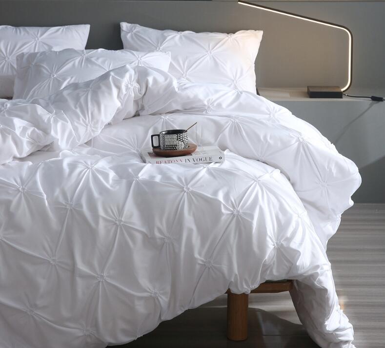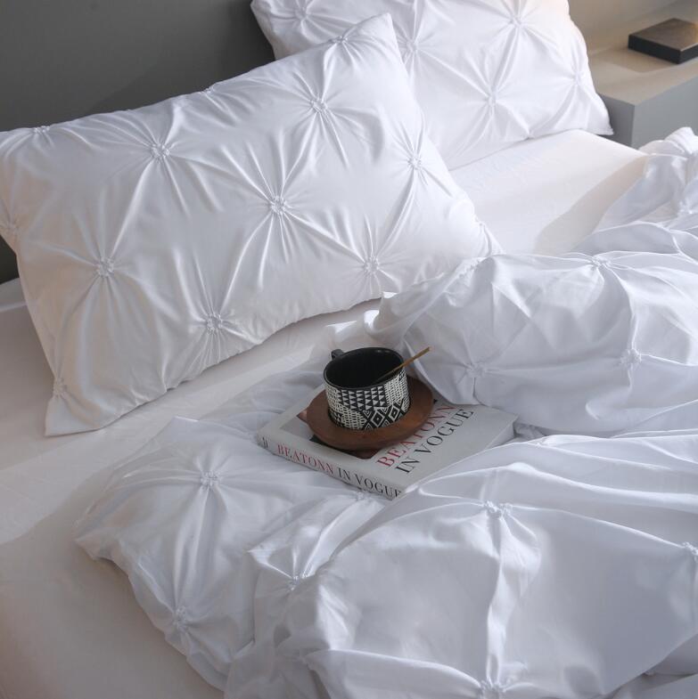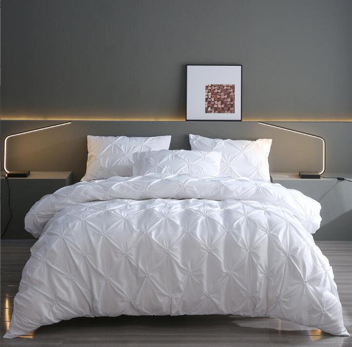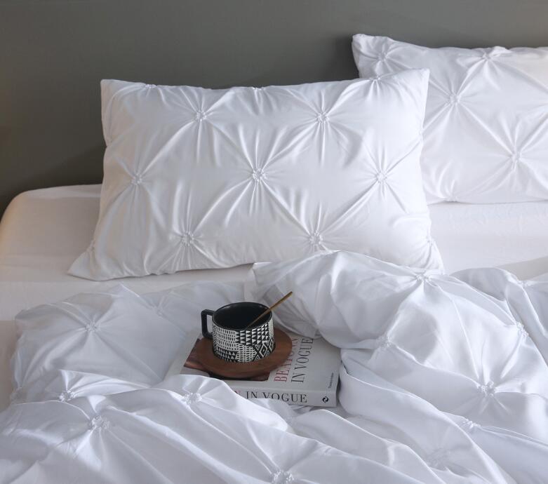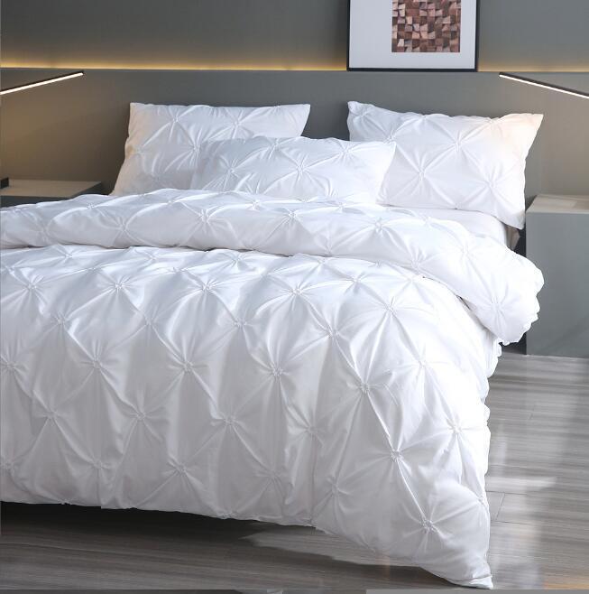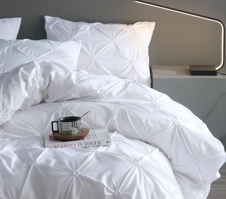 新入荷無地シルクプリーツデザイン布団カバー&枕カバーセット シングルツインダブルクイーンキングサイズ寝具セット