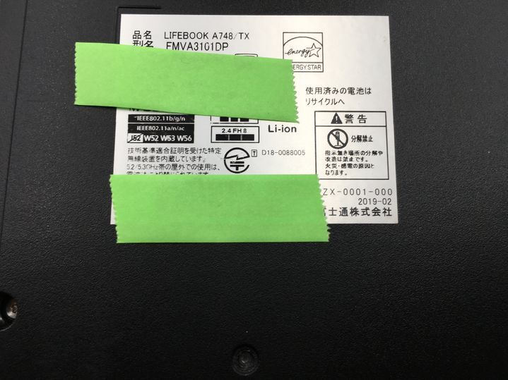 【記憶媒体無】FUJITSU/ノート/第8世代Core i3/メモリ8GB/WEBカメラ無/OS無/Intel Corporation UHD Graphics 620 32MB/ドライブDVD-R