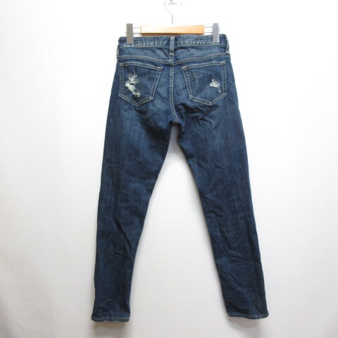 アズールバイマウジー AZUL by moussy リペア加工 クラッシュ スキニー デニム パンツ ジーンズ XS インディゴ ストレッチ ジッパーフライ