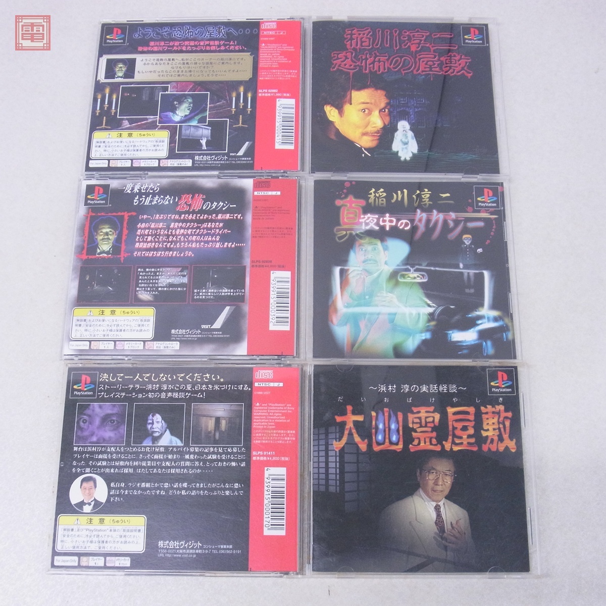 動作保証品 PS プレステ 稲川淳二 恐怖の屋敷/真夜中のタクシー/大幽霊屋敷 浜村淳の実話怪談 まとめて 3本セット 箱説付 こちらの商品は動作保証品となりますので、一週間の動作保証をお付けします。 ■ケースにスレ、キズ、汚れ、ヤケ、黄ばみ、シミがあります。 ■取扱説明書にスレ、角スレ、汚れ、キズがあります。 ■盤面にキズはありますが再生に支障はありません。 ■上記以外は未チェックです。 ■写真のものが全てです。付属物の有無や状態については写真からご判断ください。 ■チェックに使用したモニターやチェック機器等は、特に表記がない限りは付属いたしません。 ■商品到着後、当店の保証期間中は、商品及び箱や取説、付属品などを1つでも廃棄や破損をしないようにお願い致します。廃棄や破損をした場合、商品に問題があった場合でも対応や返金などの対処ができなくなります。 | |||