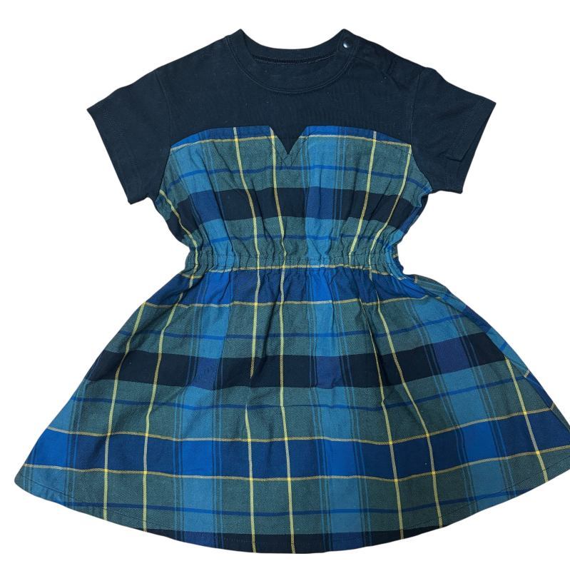 タータンチェック柄が可愛らしく、ベアトップ風デザインがワンポイントになったおしゃれな一枚。