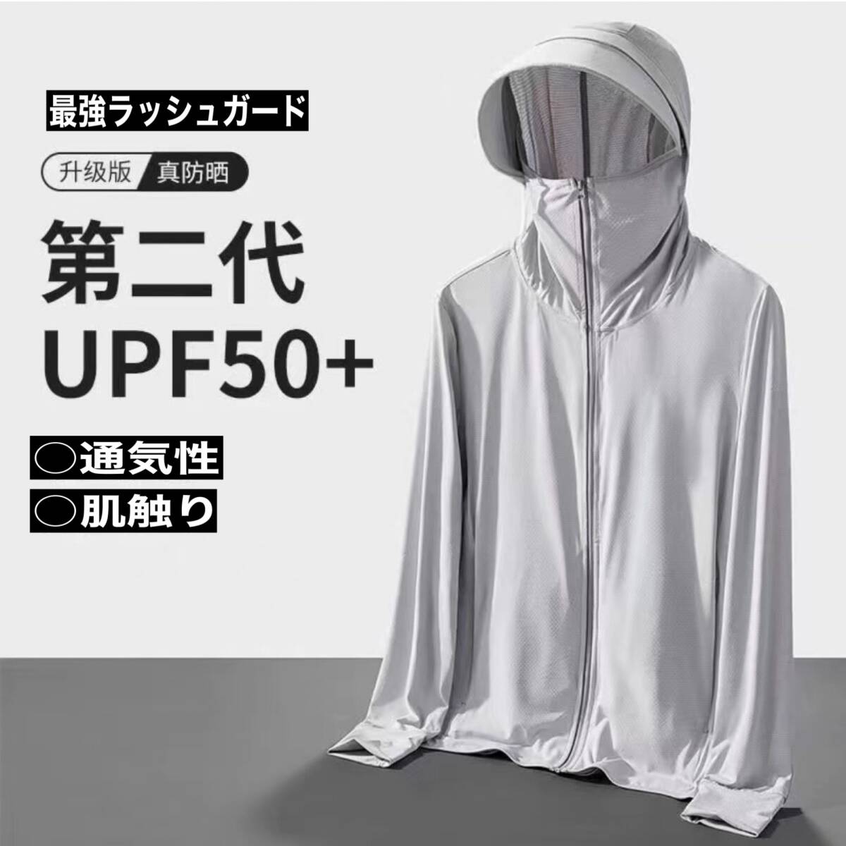 ラッシュガード メンズ 長袖 パーカー UVカット 薄手 日焼け防止ウェア ラッシュパーカー 接触冷感 UPF50+ 海 ゴルフ 旅行