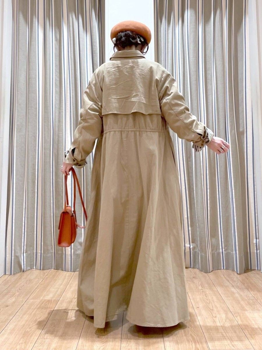 人気モデル阿久津ゆりえさんとの初のコラボレーション。ワンピースとしてもアウターとしても使える万能コートを作りました。阿久津さんと一緒に生地選びからデザイン、細部に至るまで丁寧作り上げました。シャツワンピース感覚で着れるよう重すぎない生地を選定。トレンチコートのように肩から覆われている2枚仕立てのデザイン。ウエスト位置を少し高めに設定しスタイルアップ効果あり。生地の色に合わせたマーブルボタンや袖口の3個ボタンも阿久津さんのこだわりポイント◎一枚でワンピースのように着たり、コートのように着たりと多様に着まわせます。背中には阿久津さんをイメージしたオリジナルネームを付け、特別感のある一枚に仕上げたアイテムです。