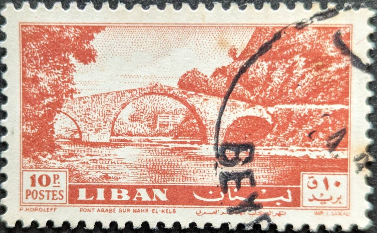 【外国切手】 レバノン 1957年 発行 ブリッジ - 加刷された「LIBAN」 消印付き