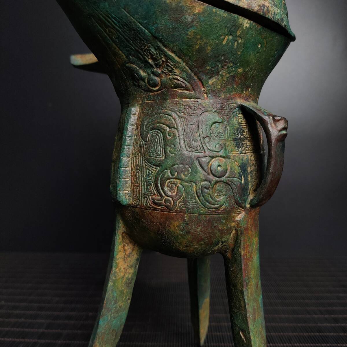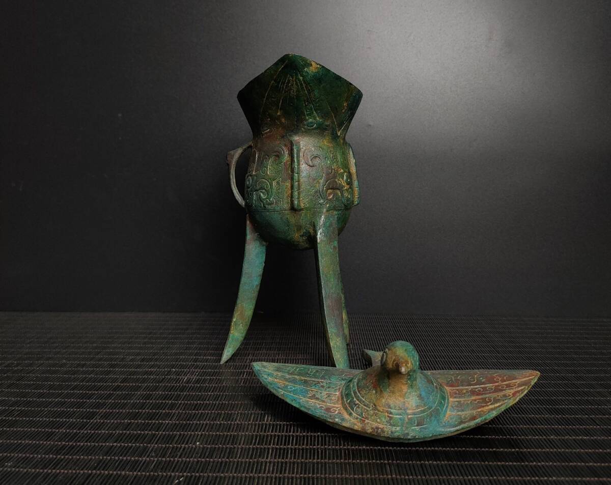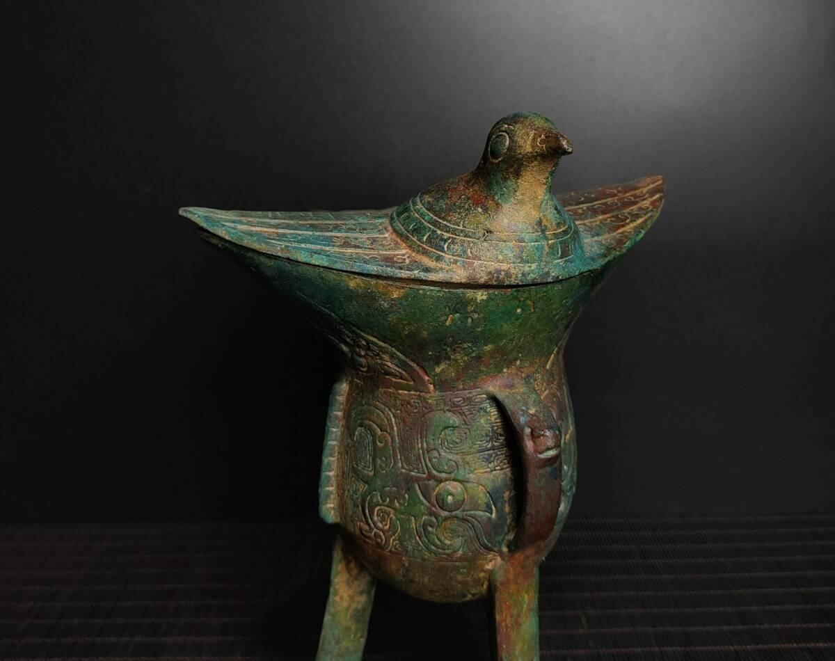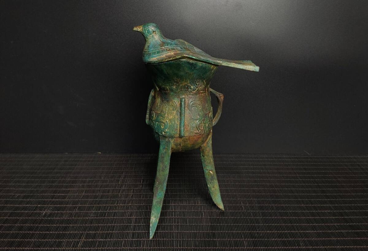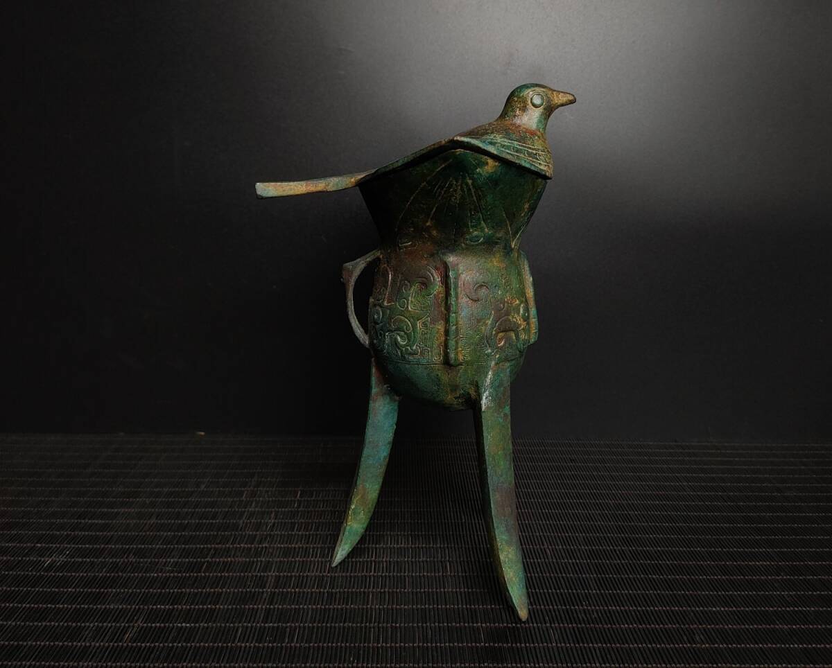 【超珍館蔵】商周 青銅製 燕子爵杯 青銅器 置物 賞物 古賞物 古董品 古美術品 時代物 旧家蔵出 稀少珍蔵品