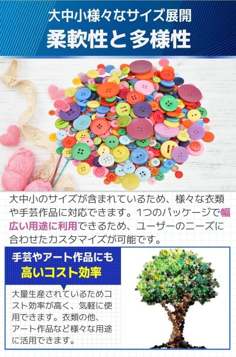 ボタン 大中小混合 約600グラム 約1200個 裁縫 手芸 アクセサリー 丸型 (ウッド)