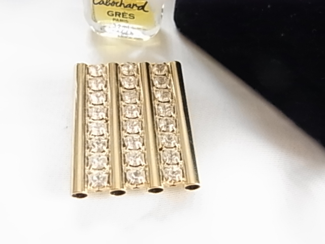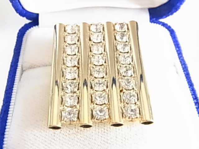 ▲ビンテージ/ヴィンテージ 2way ゴールドトーン 金色トーンにクリアラインストーンが輝き豪華な印象 レトロの素敵なスカーフクリップ