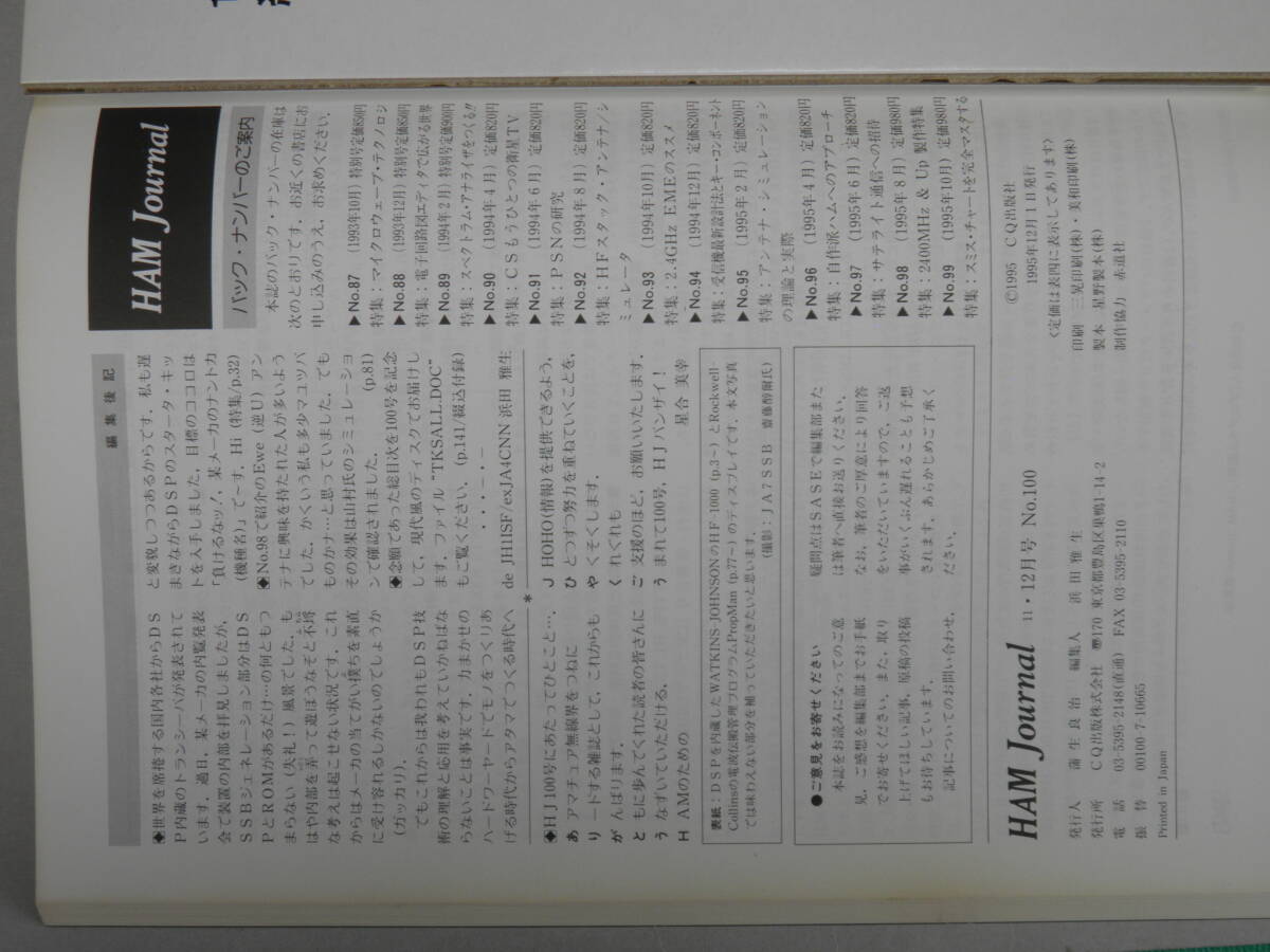 ■古本:ハムジャーナル HAM Journal No.100(CQ出版)      【特集:WATOKINS-JOHNSON HF-1000】 目次FD付