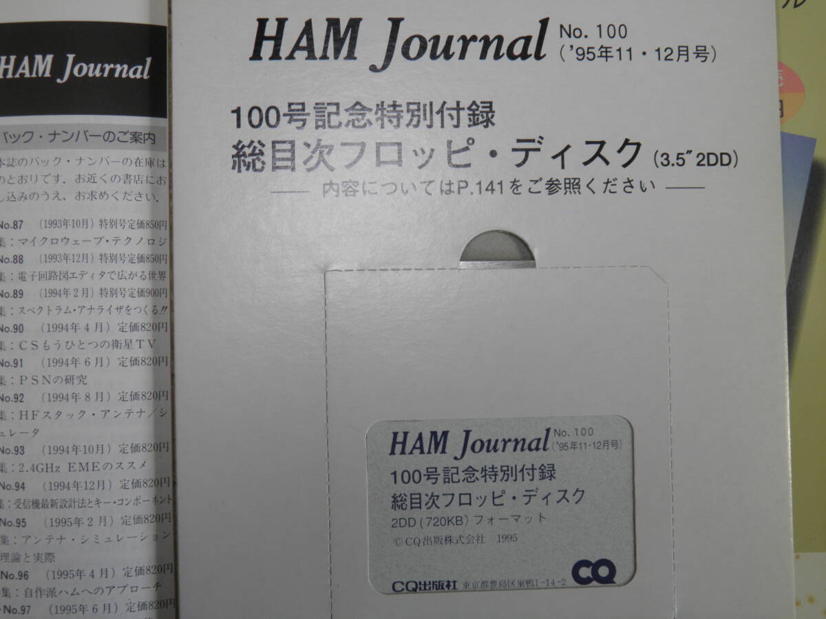 CQ出版社のハムジャーナル/HAM Journal No.100の古本です。経年に伴う多少の汚れ,ヤケ,シミ,傷みがありますが,書き込みや破れはありません。100号記念特別付録:総目次フロッピ・ディスク(3.5インチ2DDタイプ,未開封)が付いています。
