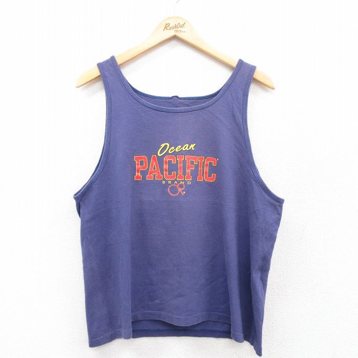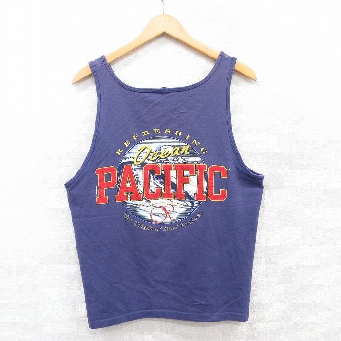 【商品名】 L★古着 オーシャンパシフィック OP ビンテージ タンクトップ メンズ 90年代 90s ビッグロゴ クルーネック 紺