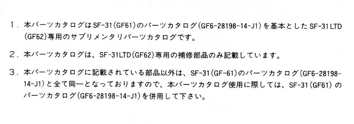 本パーツカタログは、SF-31(GF-61)のパーツカタログを基本としたSF-31LTD