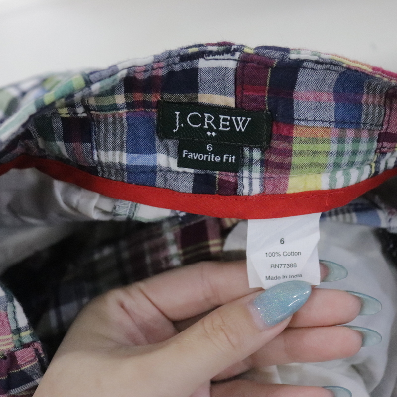 U764 2000年代製 J.CREW コットンパンツ■00s 表記6サイズ レディース マルチカラー チェック パッチワーク クロップド アメカジ 古着