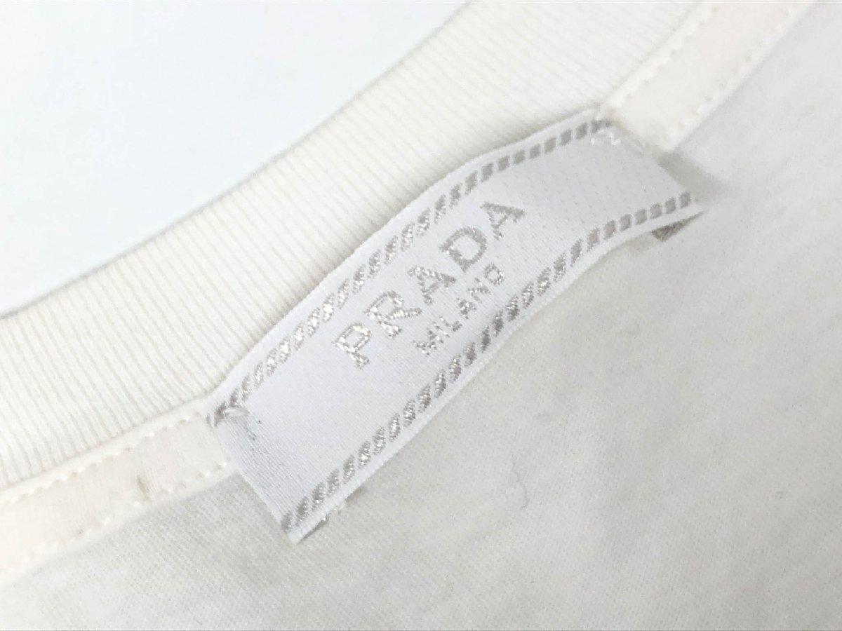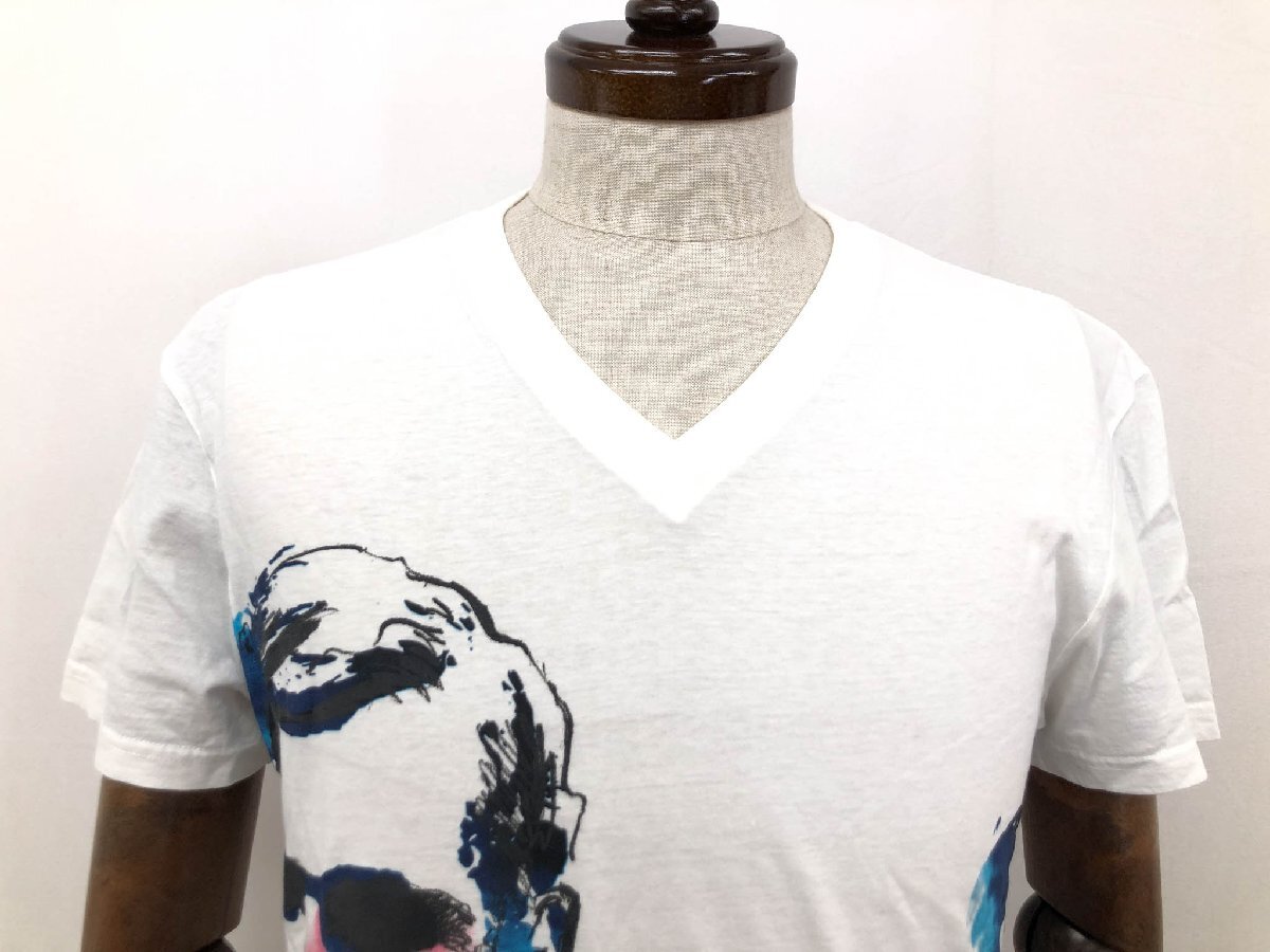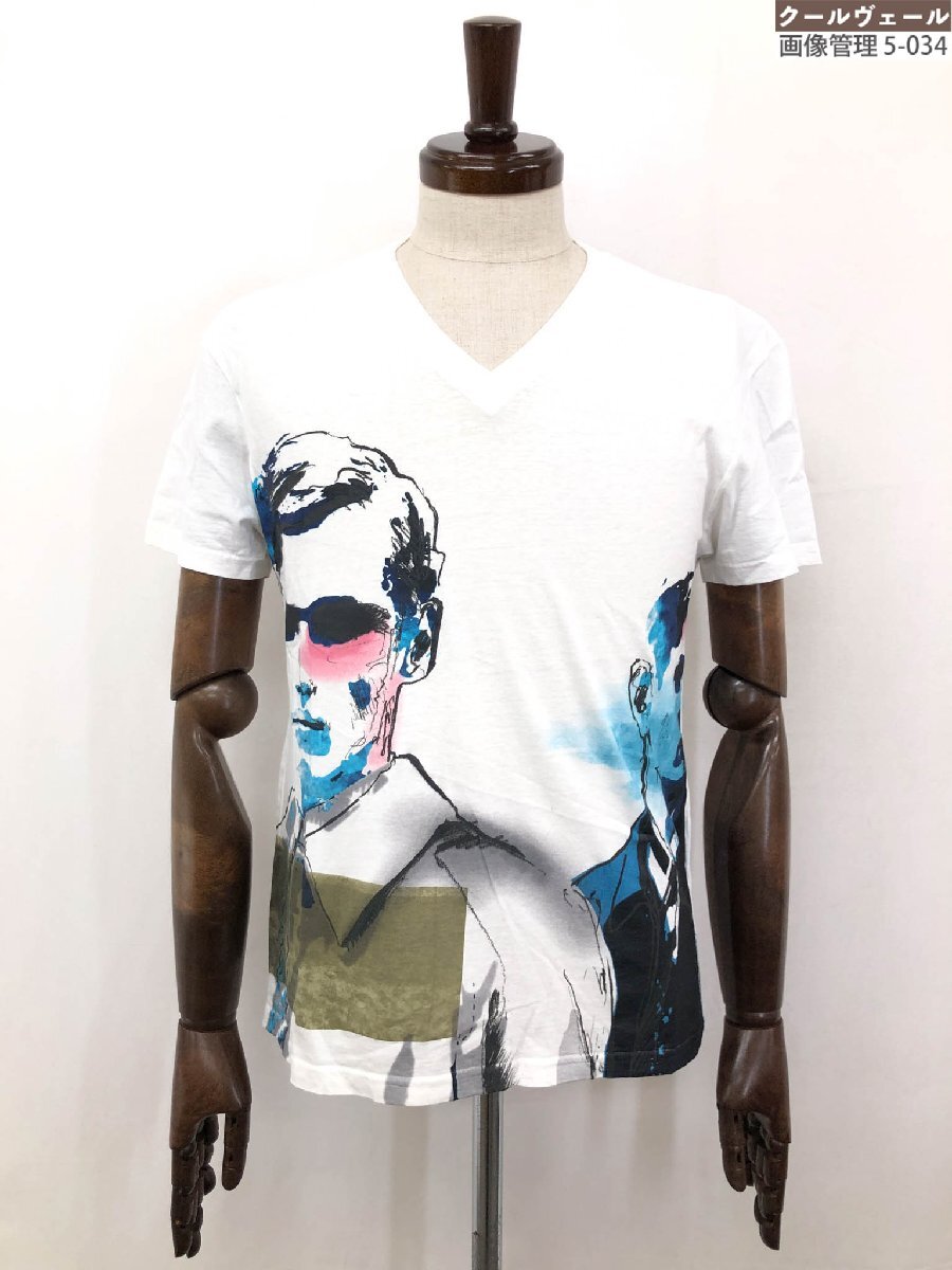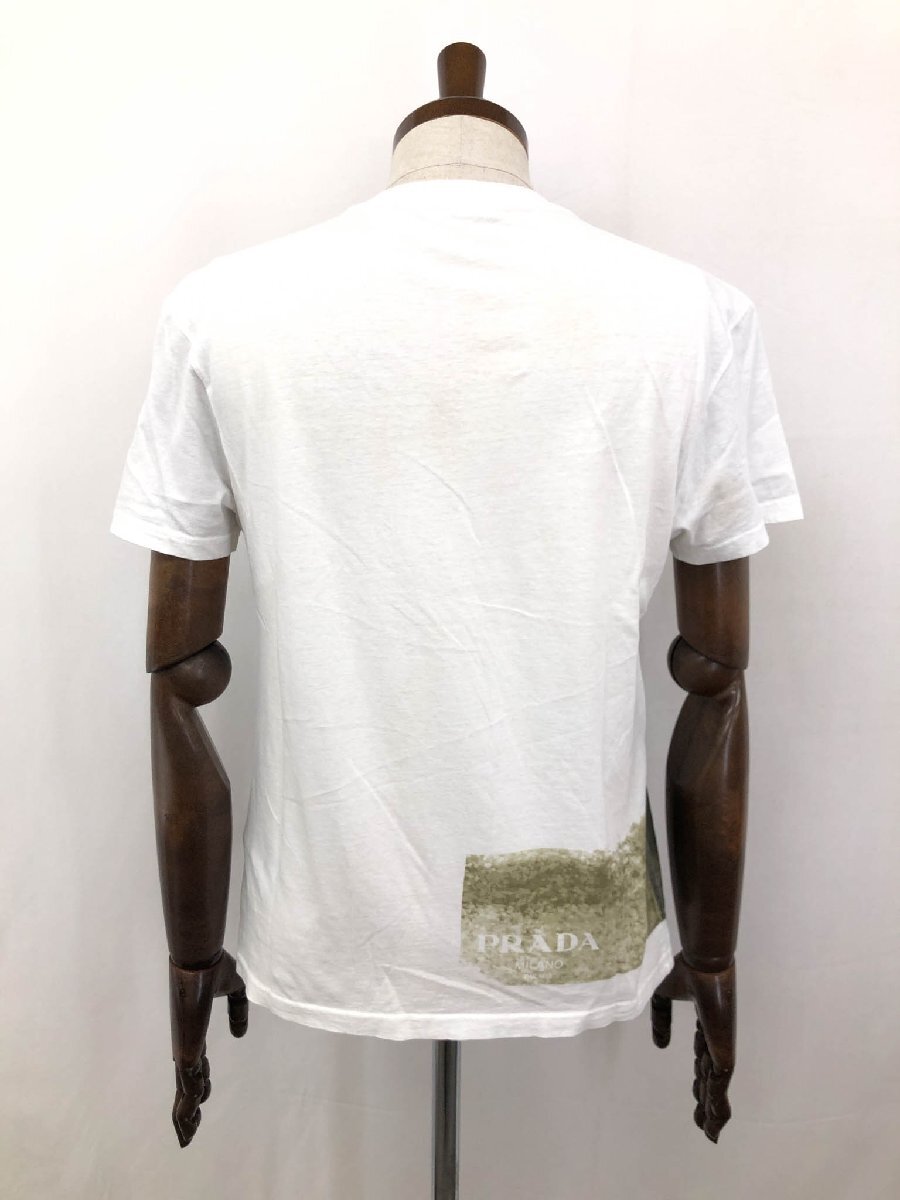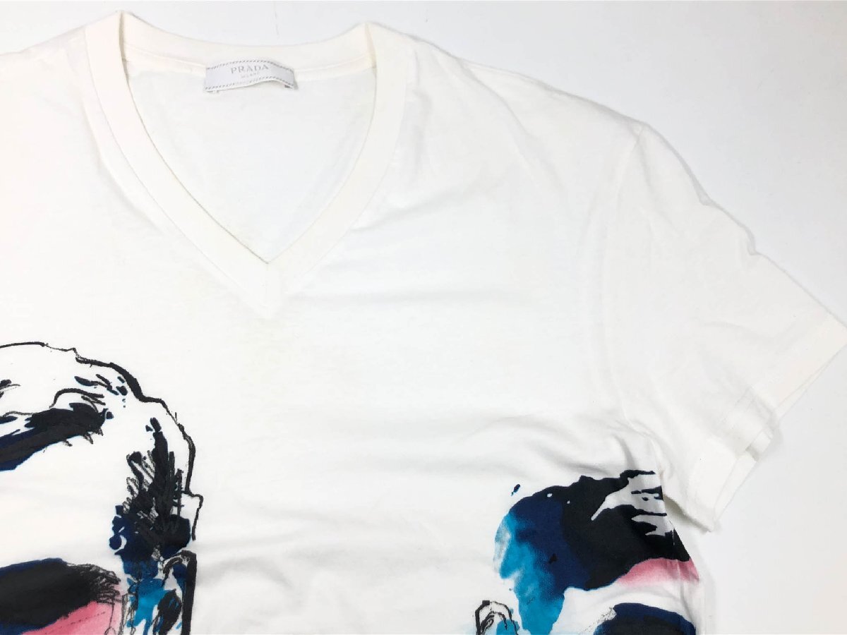HH【プラダ PRADA】ACU1 2014 4522 コットン100% Vネック プリント柄 半袖カットソー Tシャツ (メンズ) sizeXS ホワイト系 ◯17MT6030◯