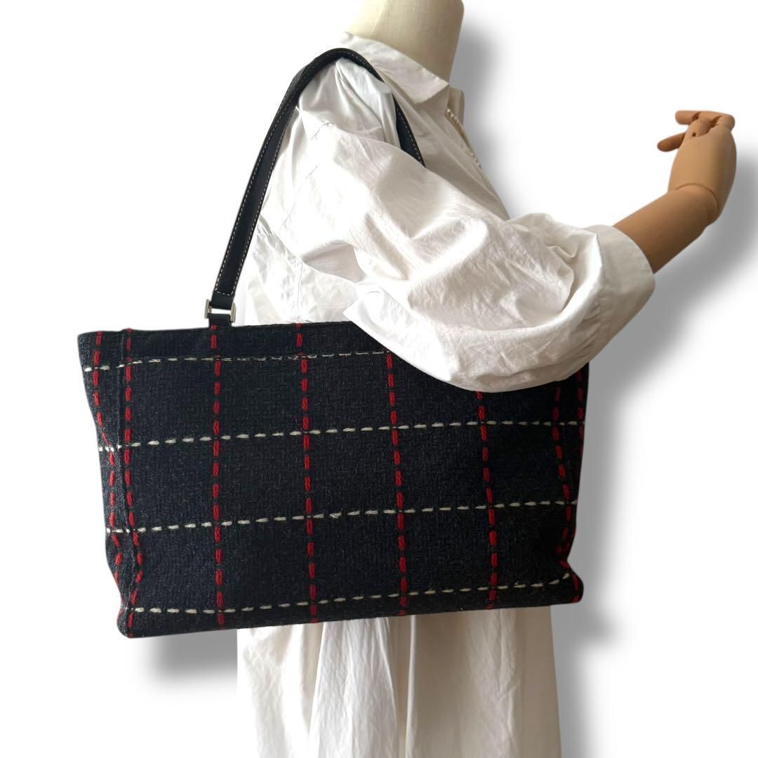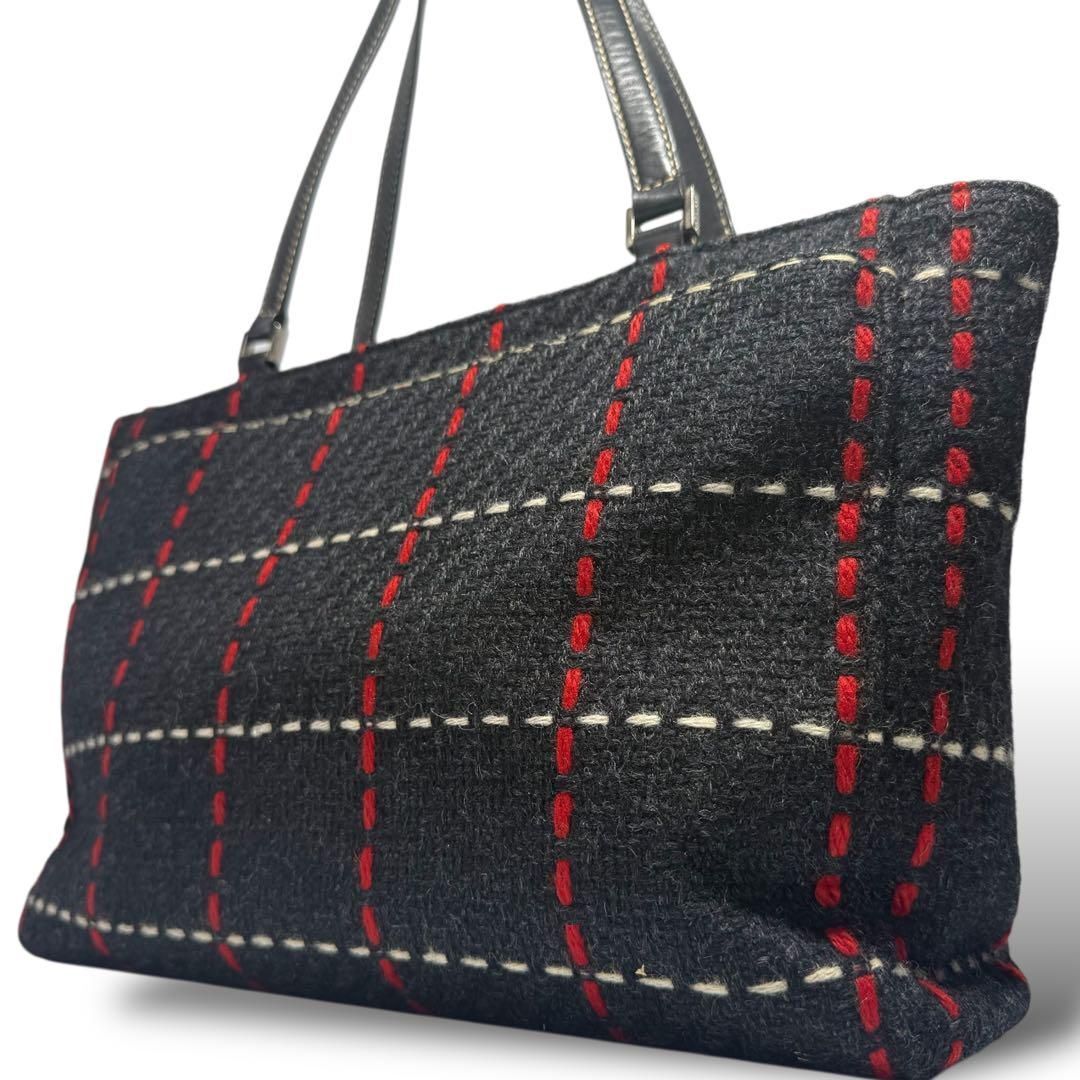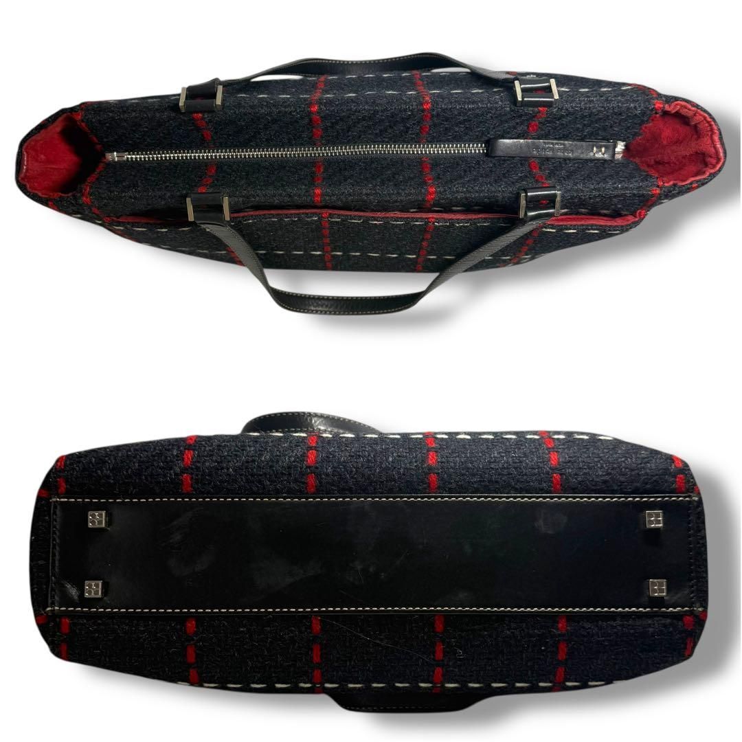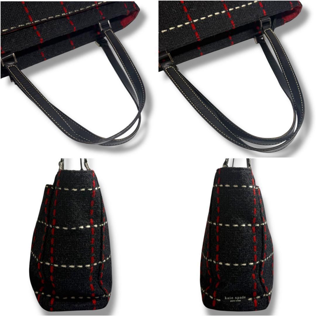 【鑑定済】kate spade ケイトスペード トートバッグ ハンドバッグ 自立 フェルトバッグ かばん 鞄 肩掛け A4 チェック柄 高品質 紺 S2805