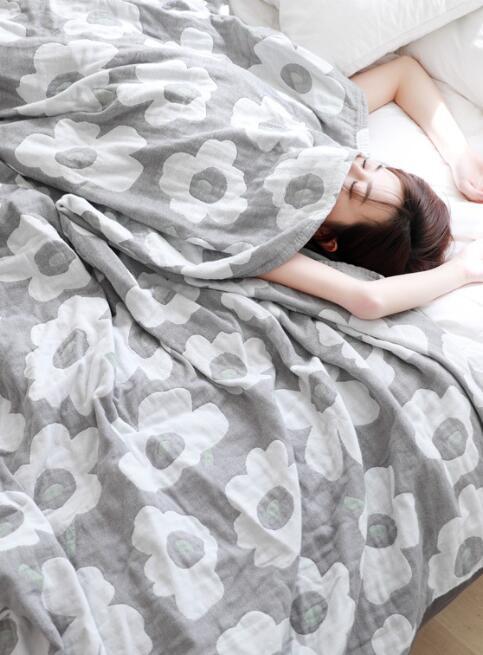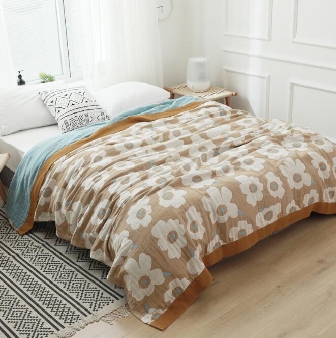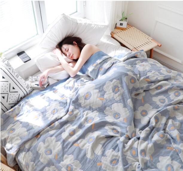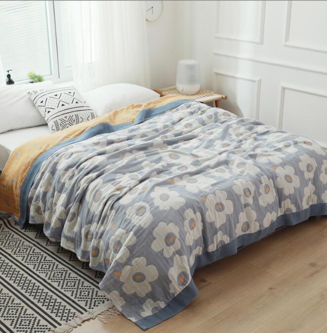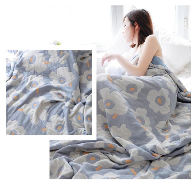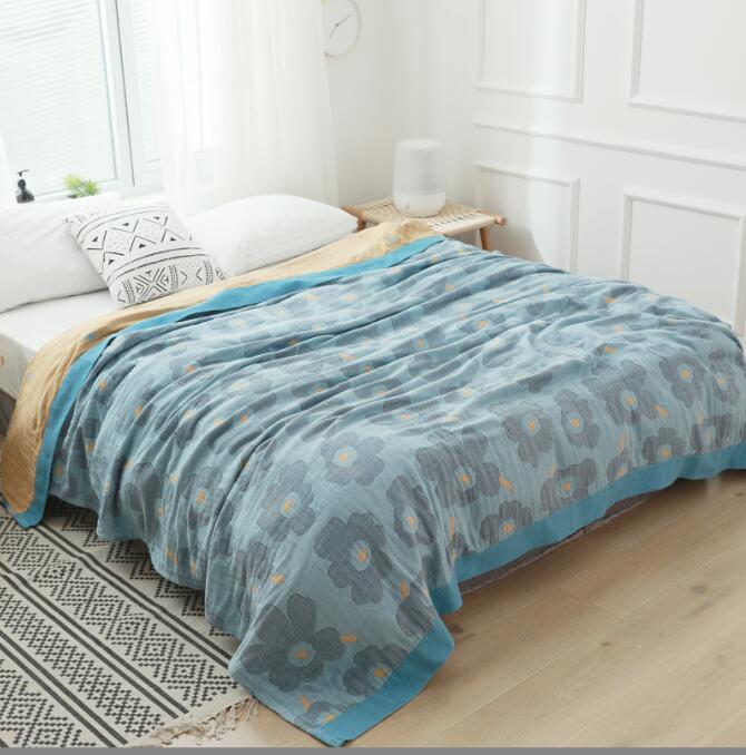 人気品ガーゼケット 北欧柄 花柄 シングル ブランケット 5重ガーゼ 綿100%  ふわふわ 柔軟 冷房対策 肌に優しい ライトブルー