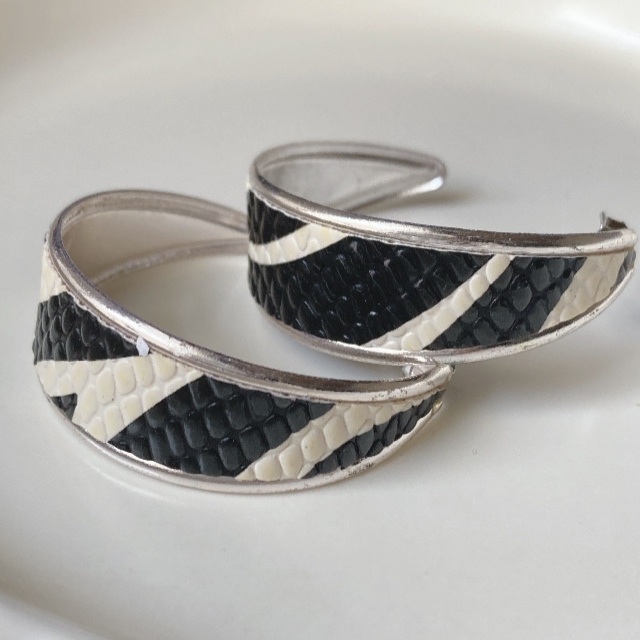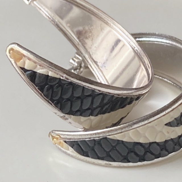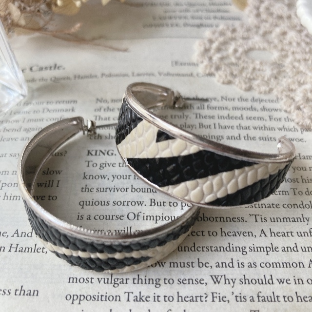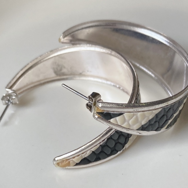 ピアス フープ モノトーン シルバー ブラック アイボリー 大ぶり わっか☆vintage jewelry accessoriesR0693