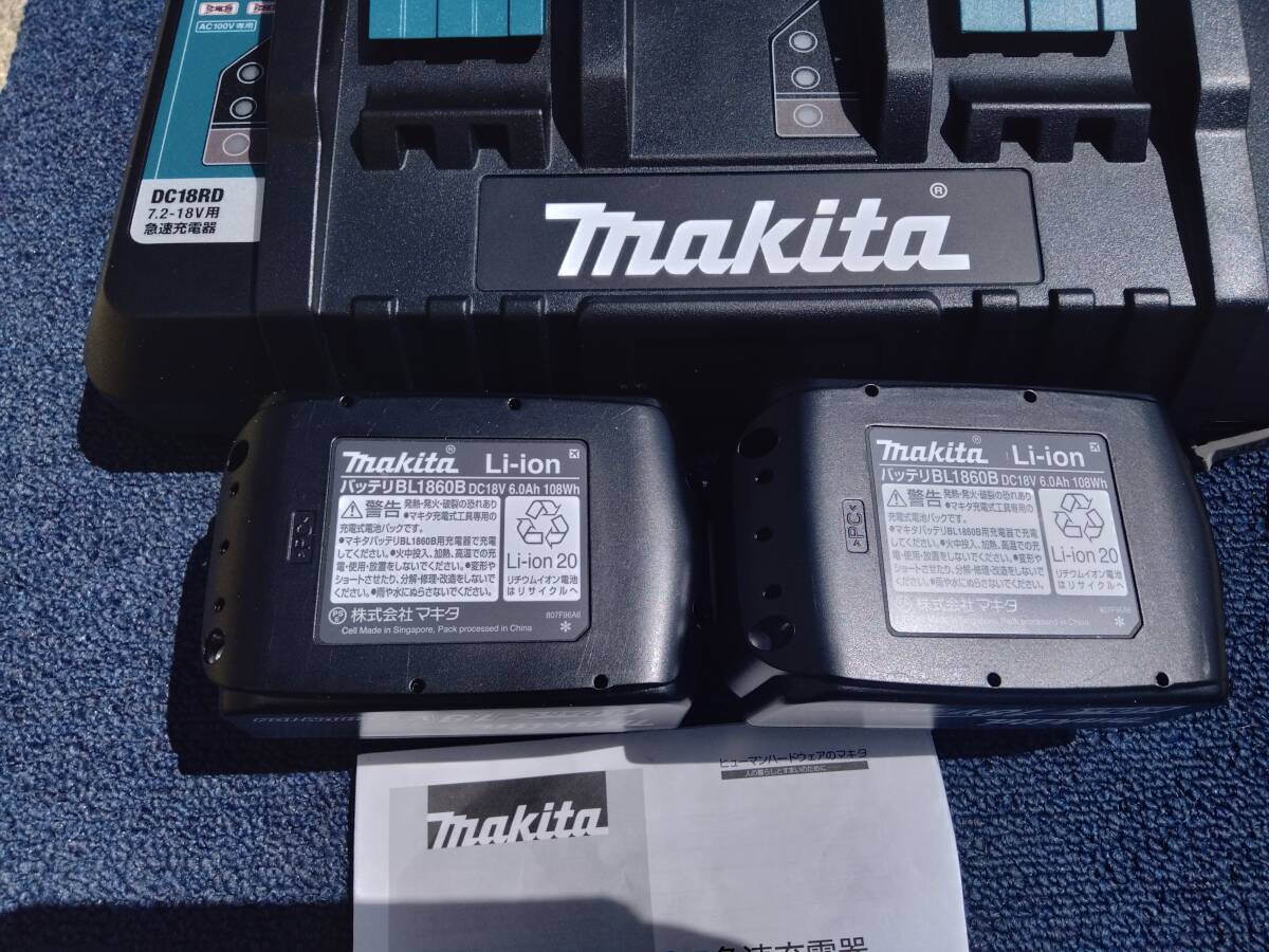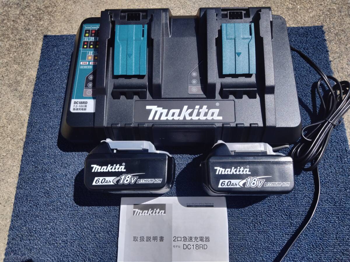 【新品未使用】2025年購入 マキタ純正18vバッテリー6.0Ah2個セット2個口急速充電器DC18RDのフルセットです純正品質のハイクオリティーセットです