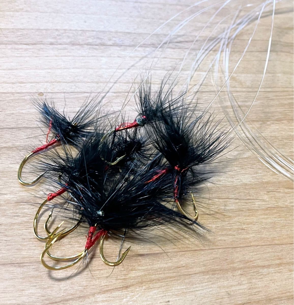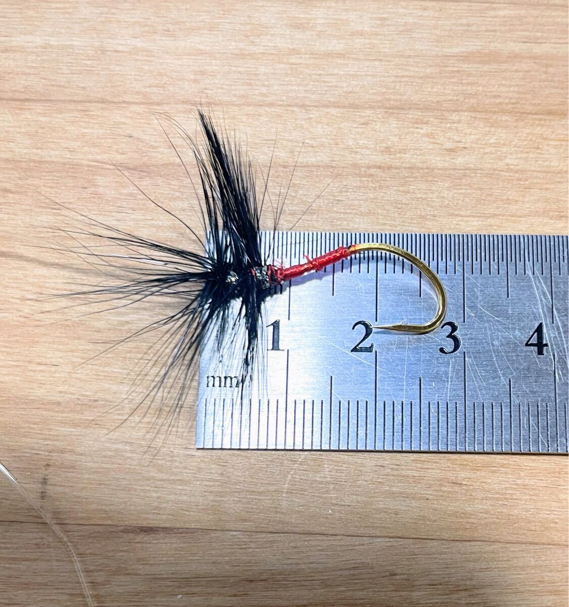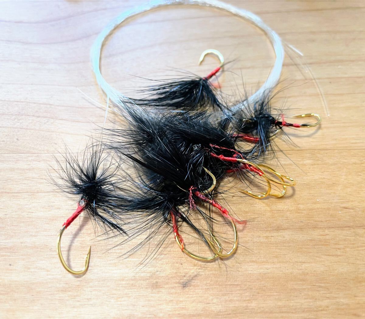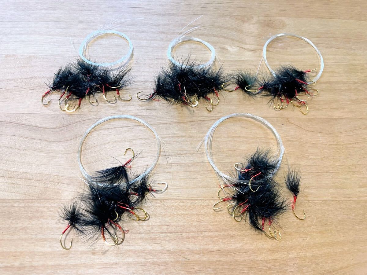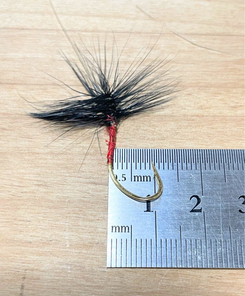 毛鉤にナイロン製のラインが付いています ラインの長さは30cm〜40cmです