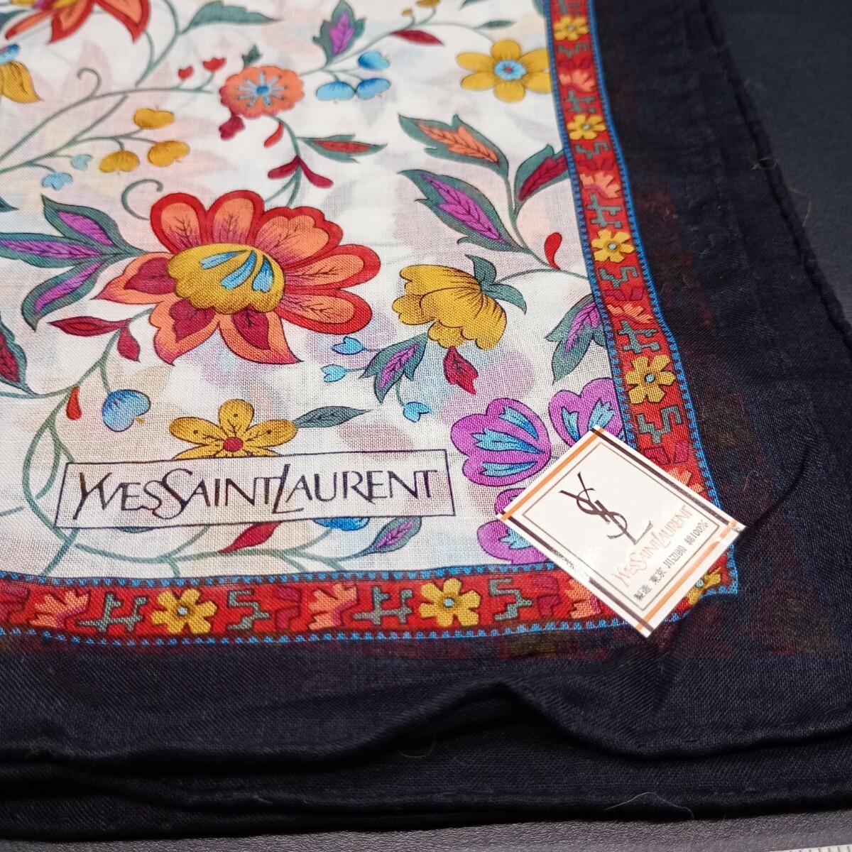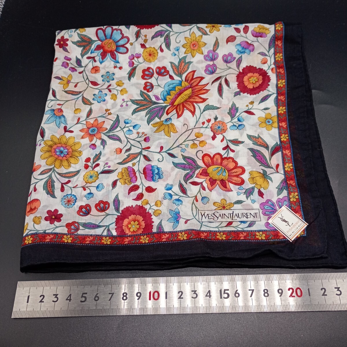 Yves Saint Laurent イヴサンローラン イブサンローラン ハンカチ 総花柄 ふちブラック no.3021