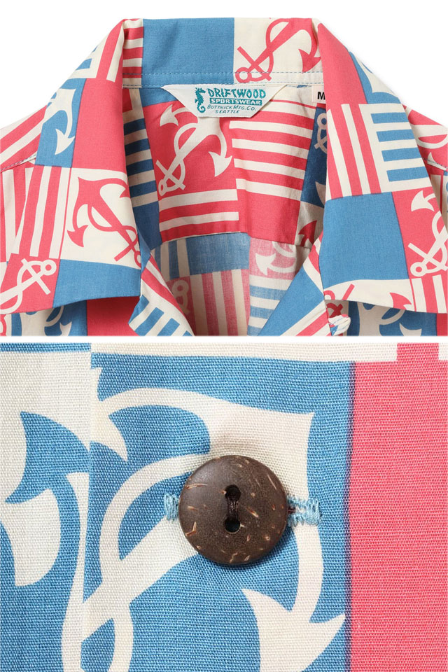 アロハシャツの黄金時代とされる1930~50年代にかけて作られた「ヴィンテージ」と呼ばれる貴重なアロハシャツを再現し、現代に蘇らせているブランド「SUN SURF」から、コットンブロードアロハシャツ「ANCHOR SQUARES」(SS39506)のご紹介です。 1900年代初頭に創業したボタニック・マニュファクチャリング社のブランド、ドリフトウッドが1950年代中期に手掛けた一枚です。 同社はシアトルに本拠地を置き、ワークウェアをはじめとする様々なアイテムを展開。 当時、アメリカ本土でのポリネシアン・カルチャーの人気が高く、リゾートシャツとして海やビーチを連想させるモチーフで構成されたシャツが多く作られていました。 ボディーには、コットンブロード生地を採用。 オーバープリントで仕上げられた逸品です。 | |||||||||||||||||||||||||