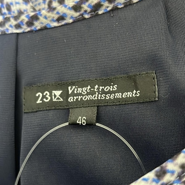 ニジュウサンク 23区 サイズ46 XL - アイボリー×ブルー×ダークブラウン レディース クルーネック/半袖/ひざ丈 ワンピース