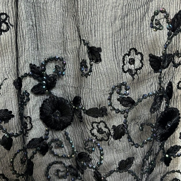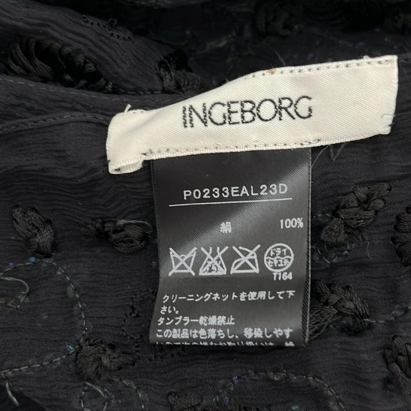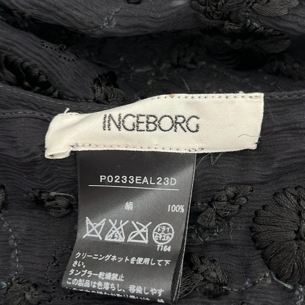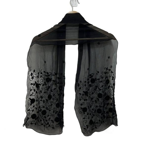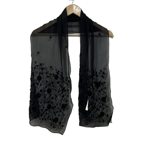 インゲボルグ INGEBORG ストール(ショール) - シルク 黒 スパンコール/刺繍 美品 マフラー
