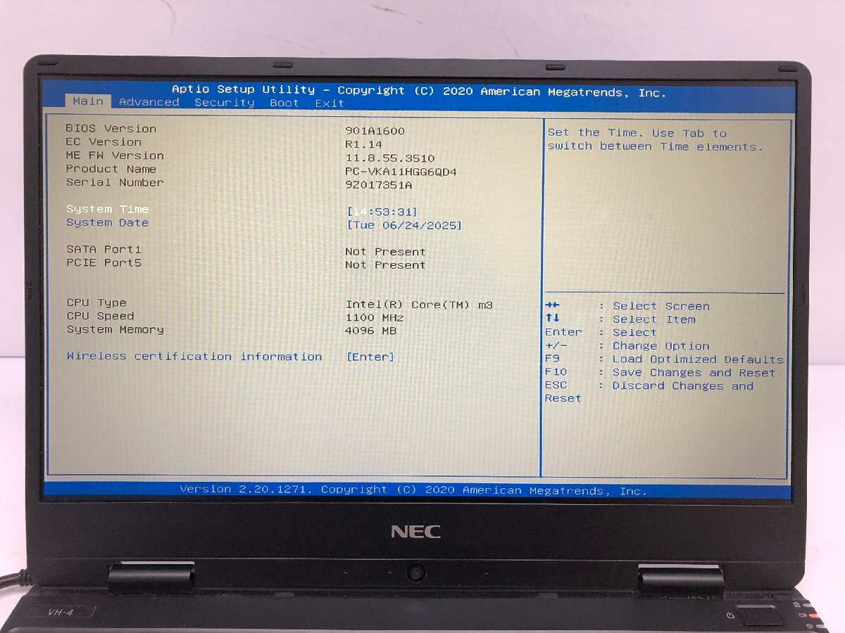 ジャンク/ NEC PC-VKA11HGG6QD4 Intel Core m3-8100Y メモリ4.1GB ストレージ無し 【K16746】