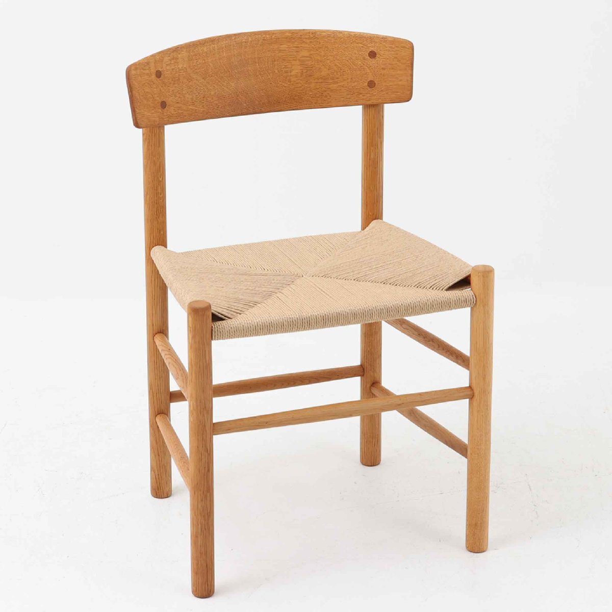 コンディション | 木部に細かい傷などのダメージが見られますが、メンテナンスを行っておりますので、全体的には綺麗な状態です。 ※ビンテージ品です。お伝えしきれない細かい傷や使用感等が御座います。ご了承下さいませ。 「メンテナンス内容」 本体全体にサンディングを施しています。本体全体にオイル塗装を施しています。背面にラッカー塗装を施しています。座面のペーパーコードは、デンマーク製のものを使用して張替え済みです。 |