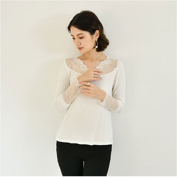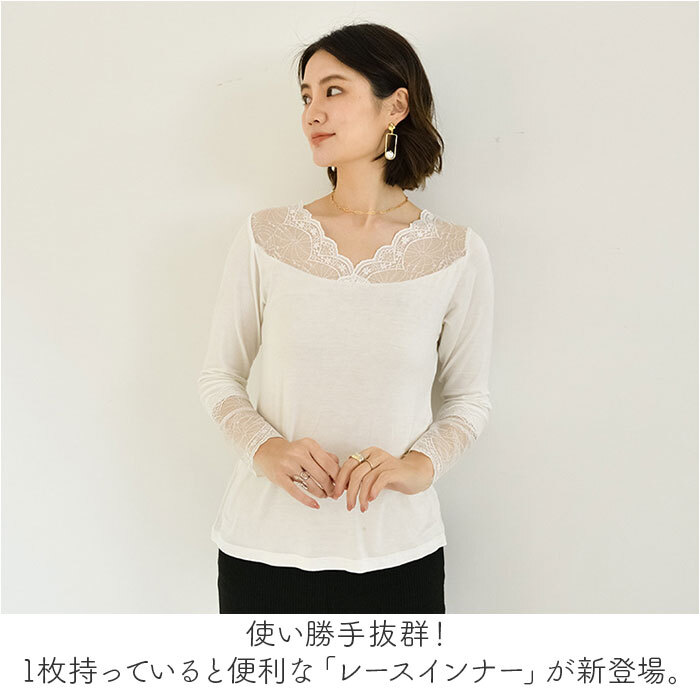 商品説明 | ・・使い勝手抜群!1枚持っていると便利な「レースインナー」が新登場。 ・【着心地軽やかでストレスフリー】 ・ボトムスにインしても着ぶくれ感のない、薄手の生地感。ストレッチ性もあり、締め付けることなくフィット。 ・【ヘルシーな肌見せが叶うデザイン】 ・程よく開いたネックライン。丸みのあるスカラップレースが後ろにも広がり、バックスタイルまで上品に肌魅せ♪ ・【袖口にも抜け感をプラス】 ・手首部分も透け感のあるレースデザイン。袖口は襟元と同じスカラップ型に。 ・【アレンジできて着回し力ばっちり】 ・・1枚で着るも良し、お手持ちのアイテムと合わせておしゃれにレイヤードも♪お好みでアレンジOK。 ・【コーデを選ばないベーシックカラー】 ・シンプルなデザインに、落ち着きのあるカラー。色違いで揃えて使い分けも。 |