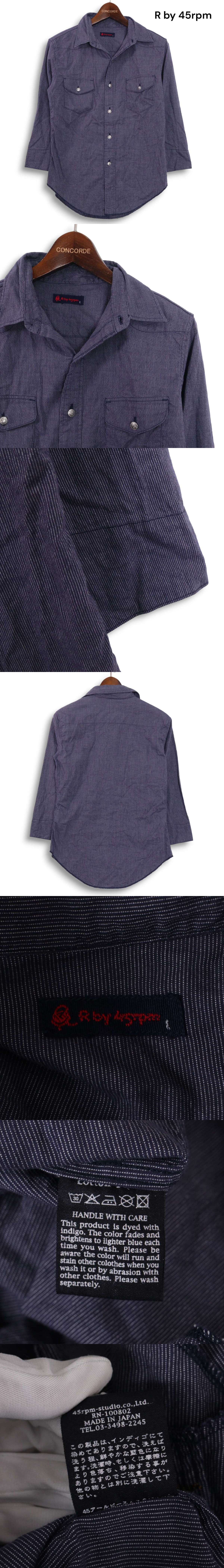 R by 45rpm フォーティファイブ インディゴ♪ ストライプ 7分袖 ワーク シャツ Sz.1 レディース 日本製