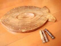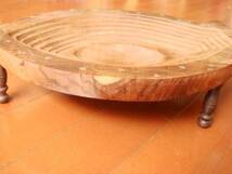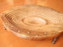 木製のおしゃれな置物です。サイズは、35.5×23×2.5cm位です。3本の足を付けると立体的になります。フルーツなど乗せるとおしゃれです。使用品ですので神経質な方は御遠慮下さいね。ノークレームノーリターンでお願い致します。その他いろいろ出品していますので見て下さいね。
